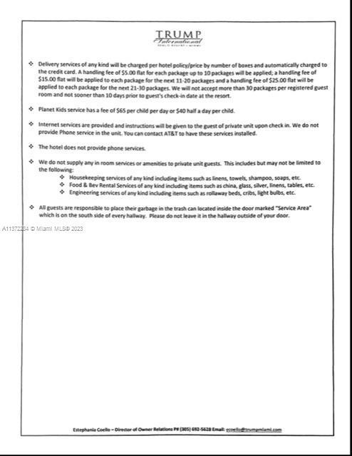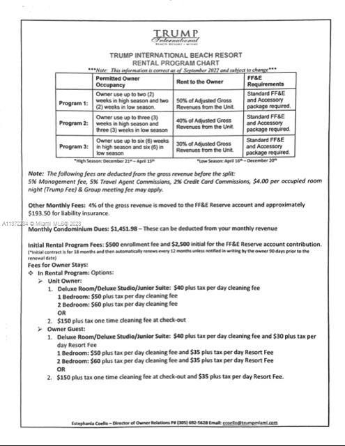 Trump International Condo Hotel Gorgeous Bay view deluxe studio 551 sq.ft with two queen size beds, open sunset balcony. Enjoy ocean, beach and 5 stars hotel amenities for up to 12 weeks per year and earn good income from renting with the hotel program. Rental programs are attached and income statements can be shown upon request.