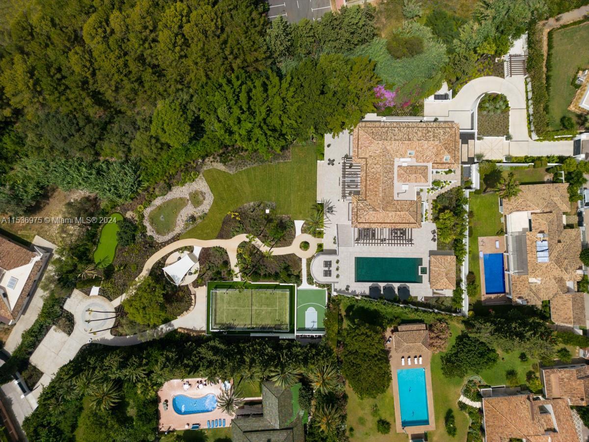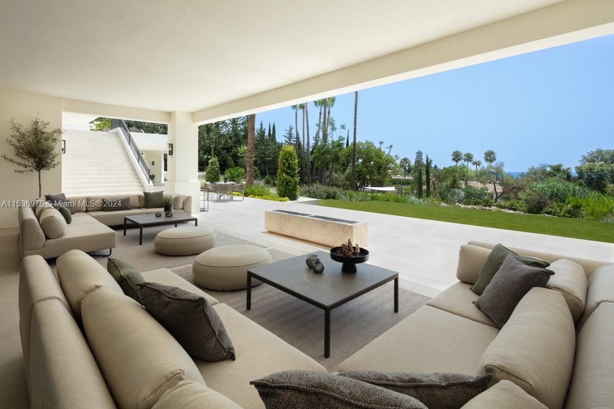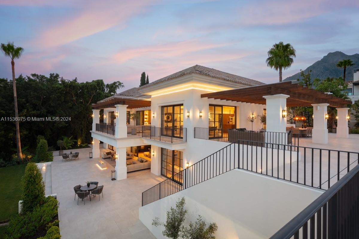 Property is located in Marbella, Spain. Villa Alpine: Palatial estate in Rocío de Nagüeles with vast living spaces, mountain and sea views, and sprawling gardens. Gourmet kitchen by Danespan, heated saltwater pool, outdoor kitchenette, and private courts. 7 bedrooms, including luxurious master suite with terrace. Features wellness spa, wine room, entertainment area, gym, and guest apartment. Epitome of Marbella luxury living with proximity to La Concha mountain, emblematic of Mediterranean architecture. This residence embodies sophistication, offering breathtaking vistas, prime location, unrivaled elegance, and the pinnacle of opulent living.