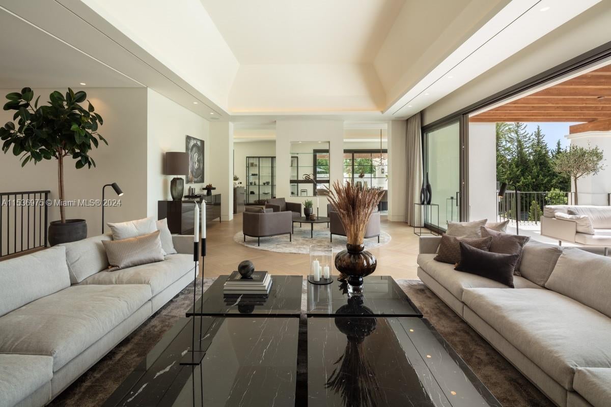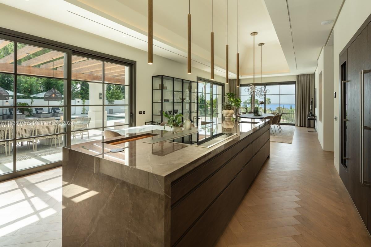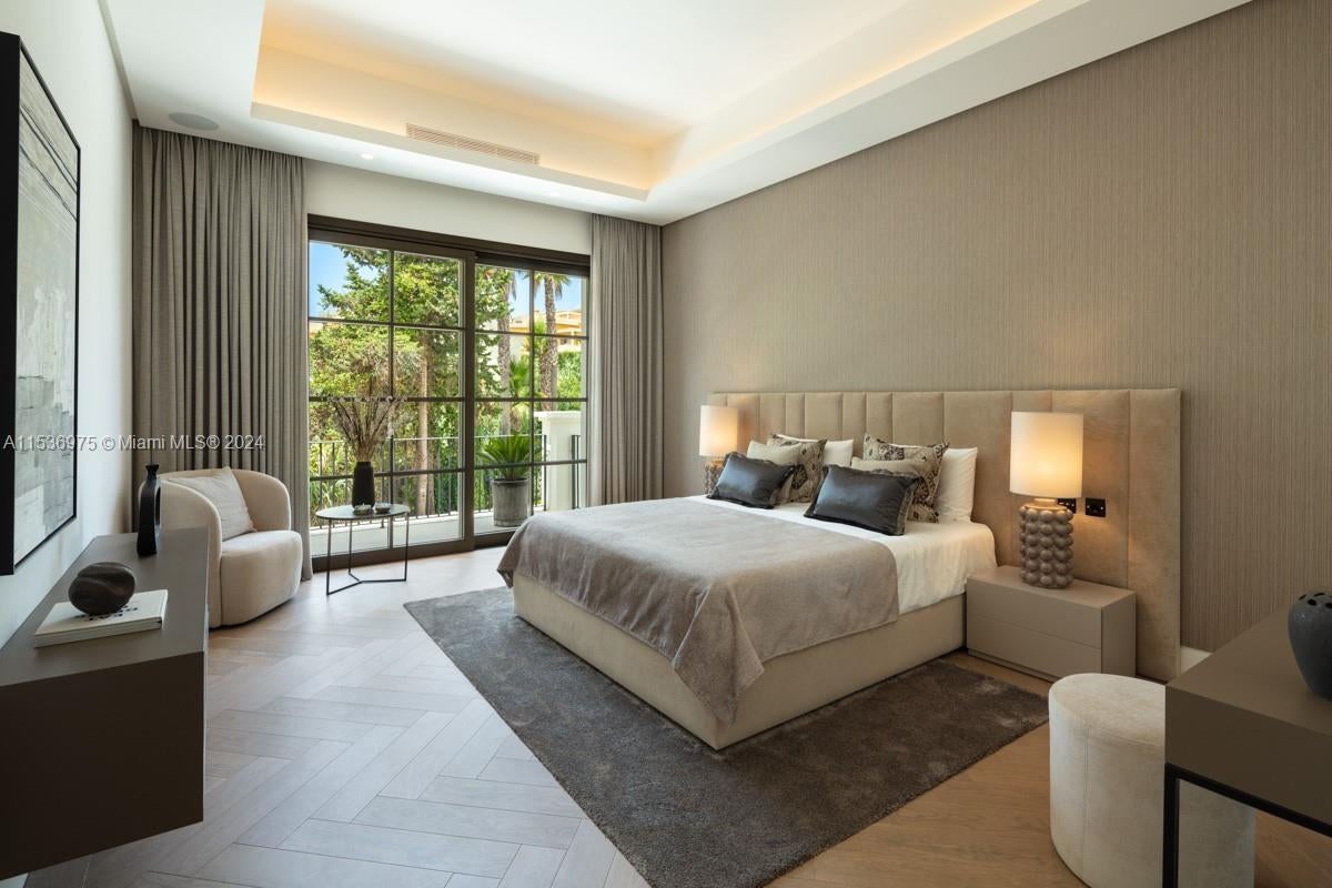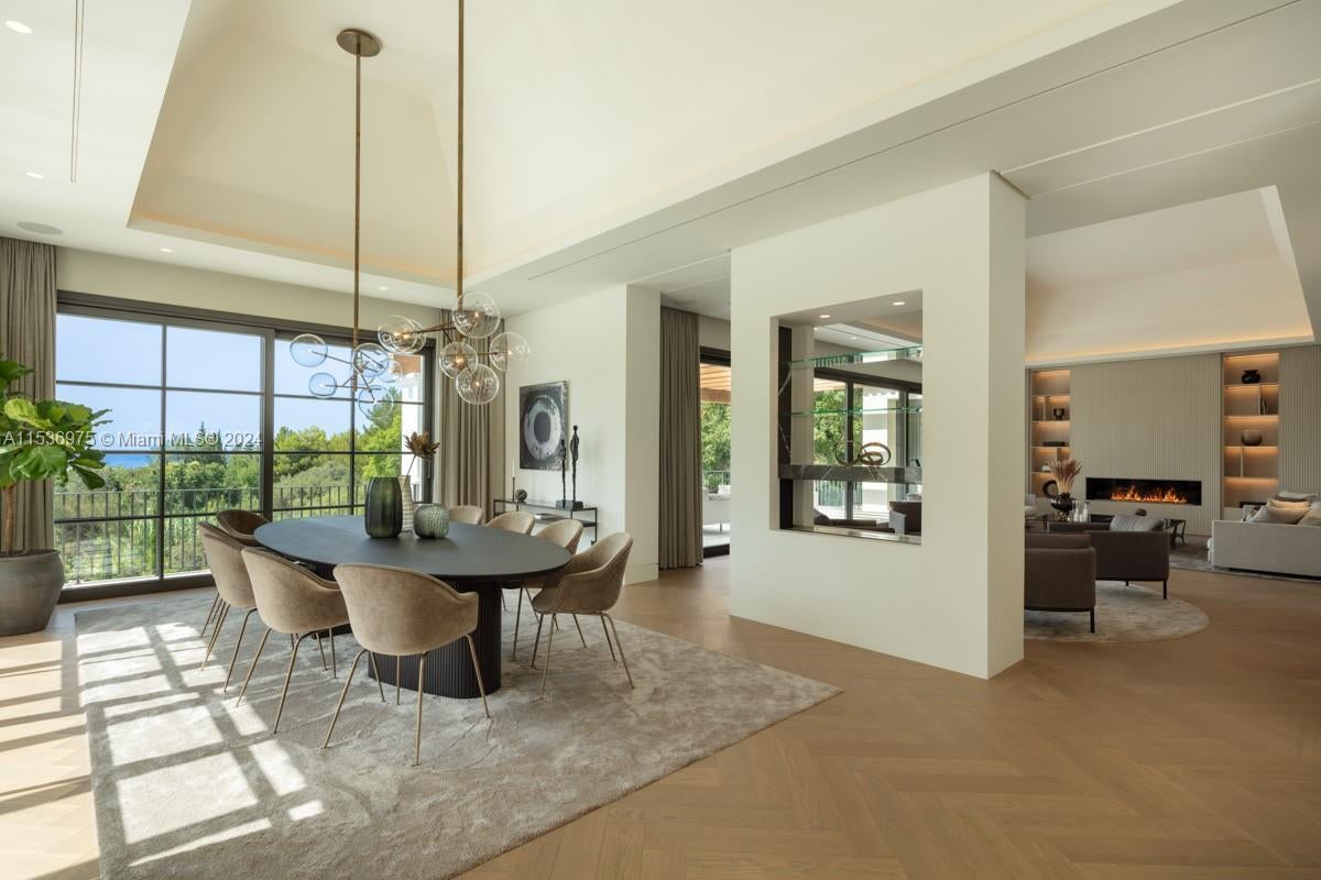 Property is located in Marbella, Spain. Villa Alpine: Palatial estate in Rocío de Nagüeles with vast living spaces, mountain and sea views, and sprawling gardens. Gourmet kitchen by Danespan, heated saltwater pool, outdoor kitchenette, and private courts. 7 bedrooms, including luxurious master suite with terrace. Features wellness spa, wine room, entertainment area, gym, and guest apartment. Epitome of Marbella luxury living with proximity to La Concha mountain, emblematic of Mediterranean architecture. This residence embodies sophistication, offering breathtaking vistas, prime location, unrivaled elegance, and the pinnacle of opulent living.