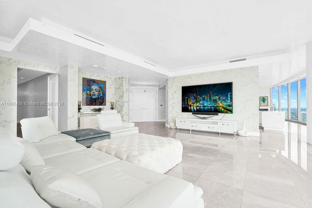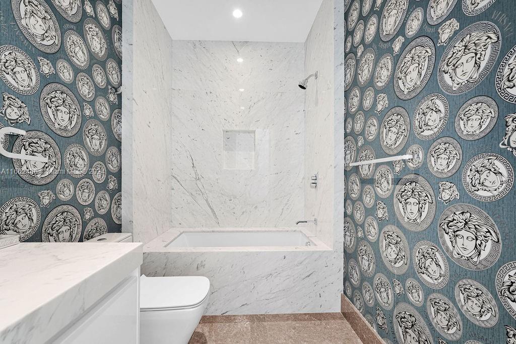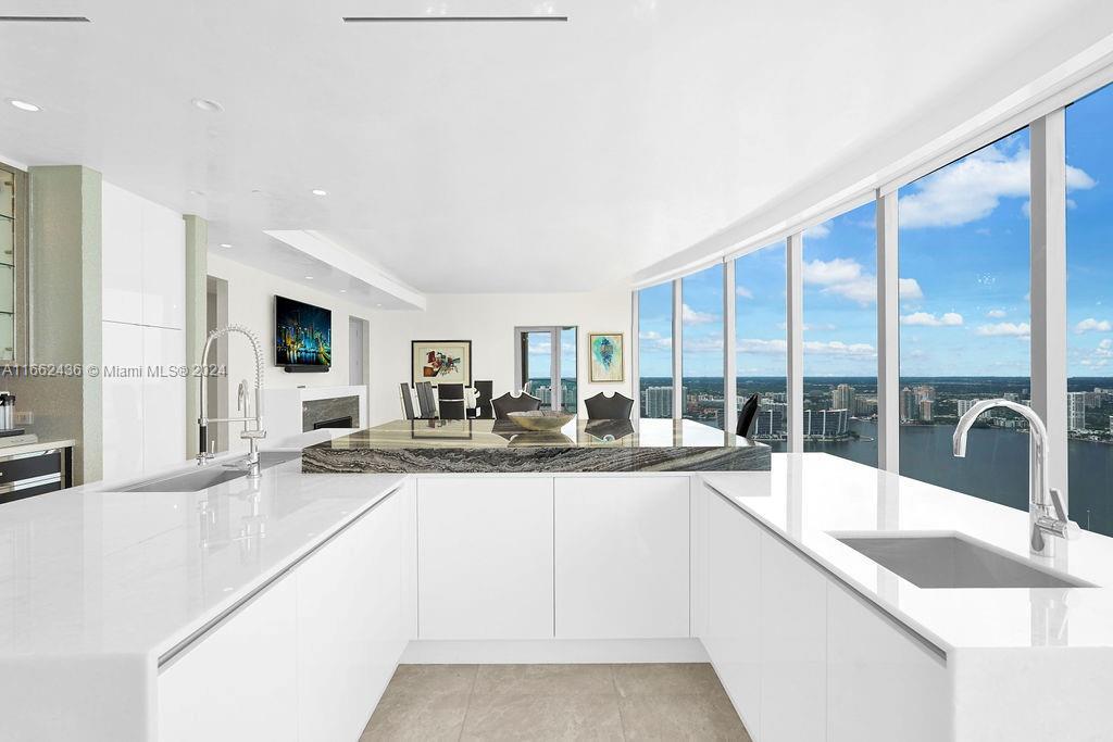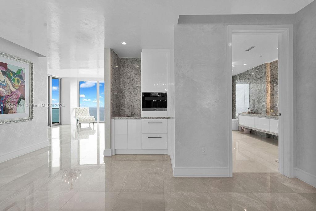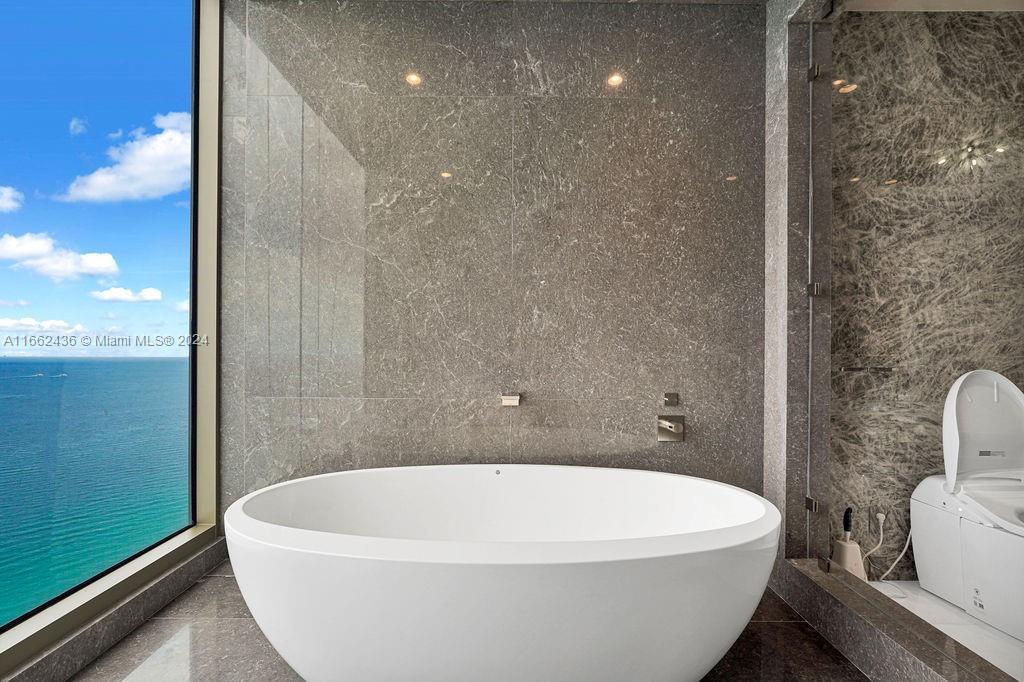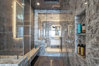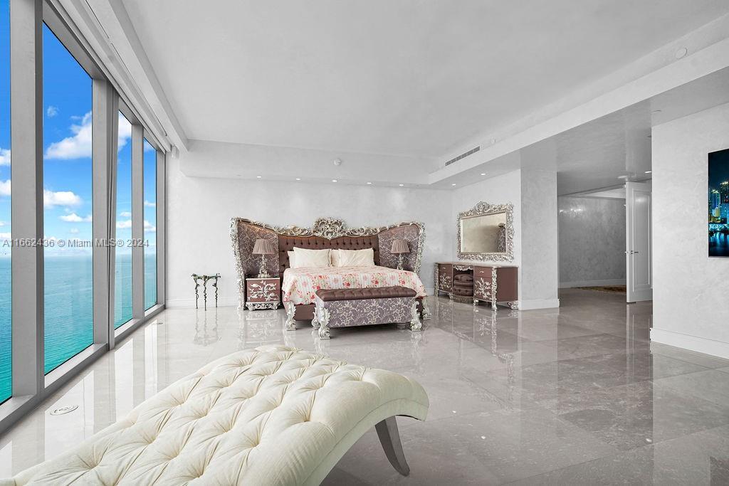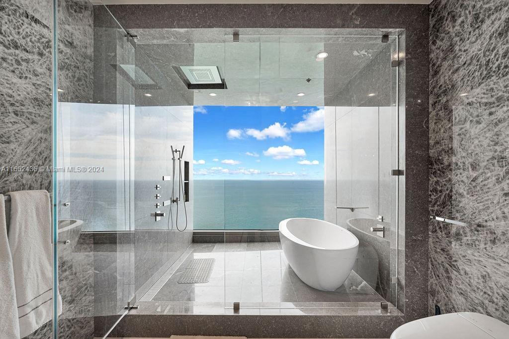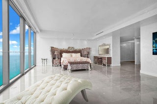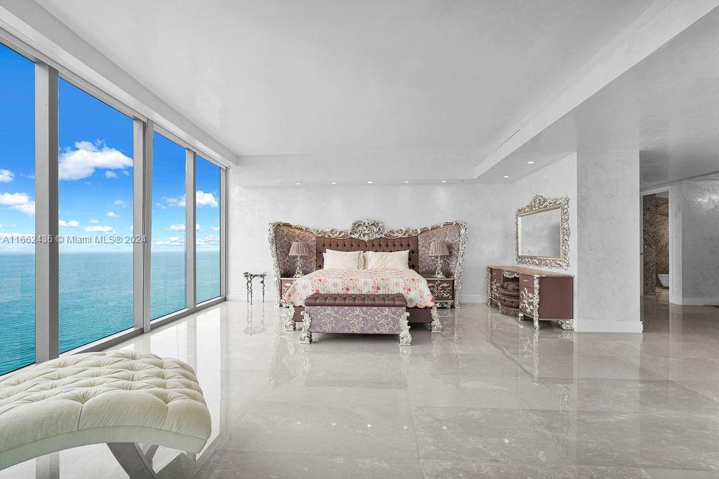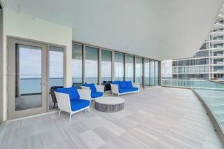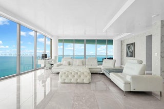 Welcome to the prestigious Estates at Acqualina, featuring a stunning NE corner unit with 4 bedrooms, 6.1 bathrooms, and a maid's room. This 5,222 sq. ft. residence offers breathtaking views of the ocean, bay, and skyline, with 1,000 sq. ft. of outdoor living space, complete with separate sunrise and sunset balconies, an oceanfront sauna, spa, and private BBQ. Inside, enjoy 10.6-foot ceilings, a chef's kitchen with top-tier appliances, and a grand primary suite with dual bathrooms and an oversized Italian leather closet. The building's luxurious amenities include 5 restaurants, 3 pools, a Rolls-Royce house car, a cinema, bowling alley, , water slide, golf simulator, soccer, basketball, Ice skating and more.