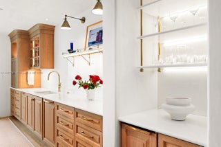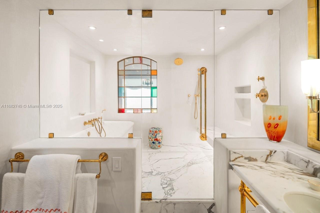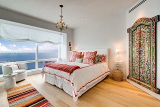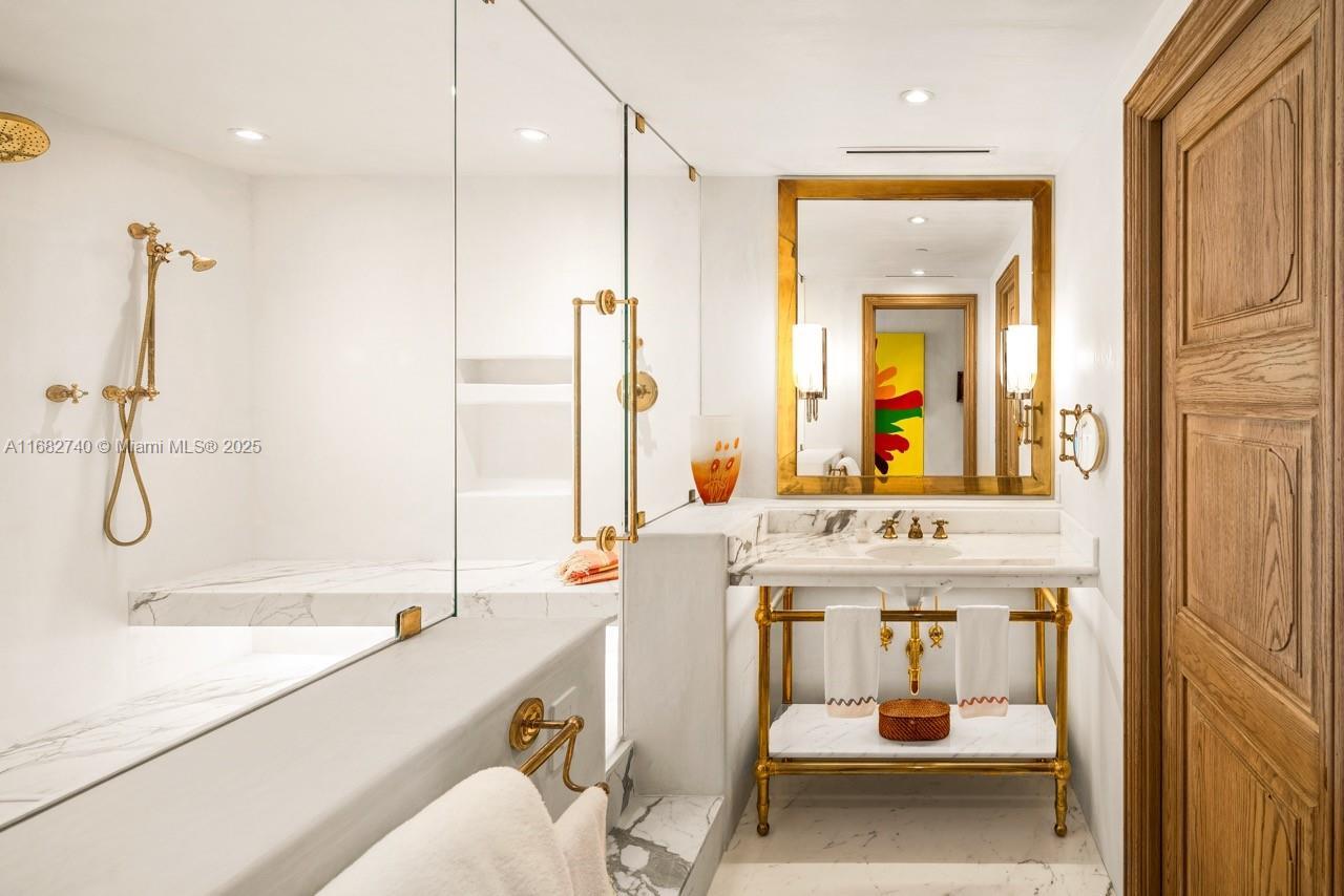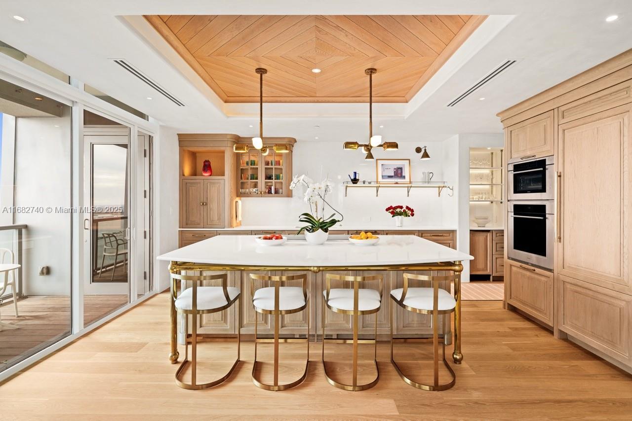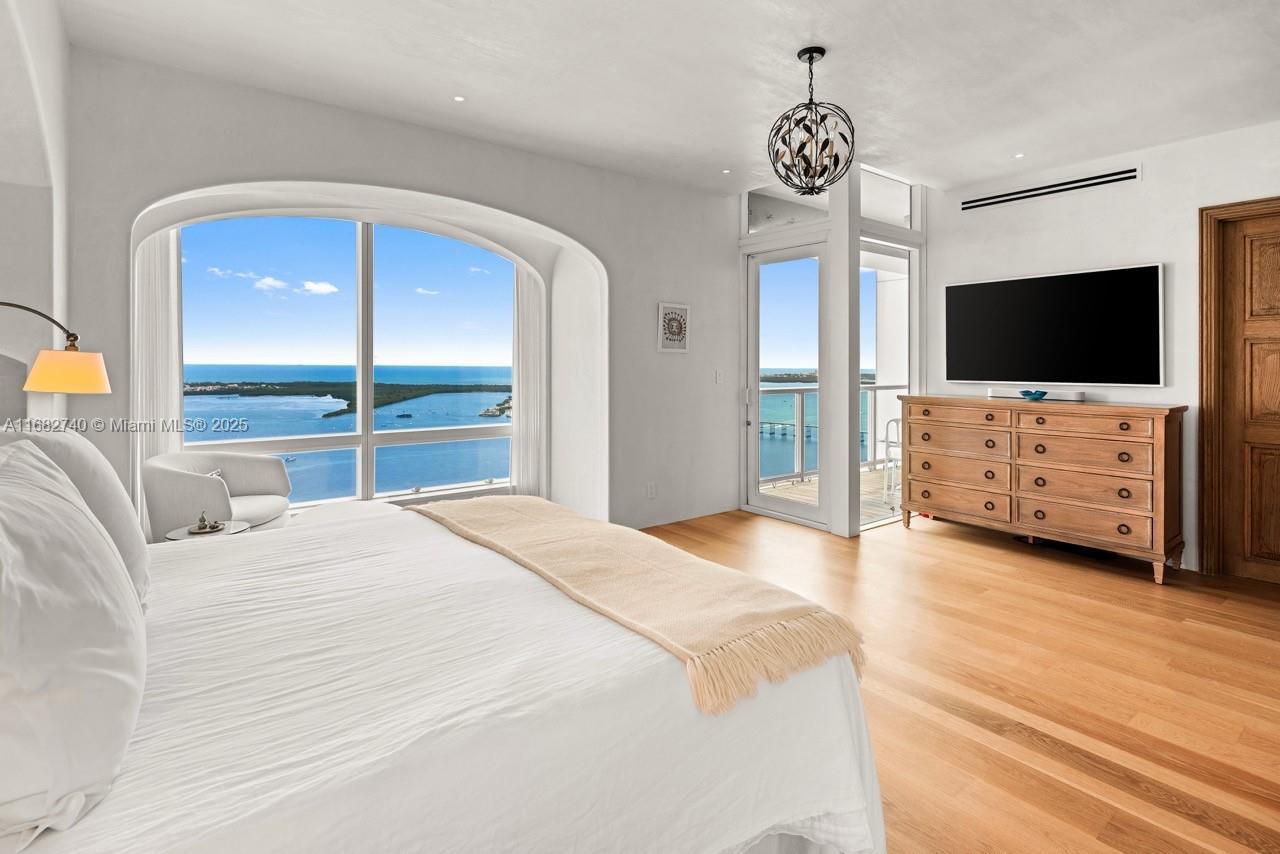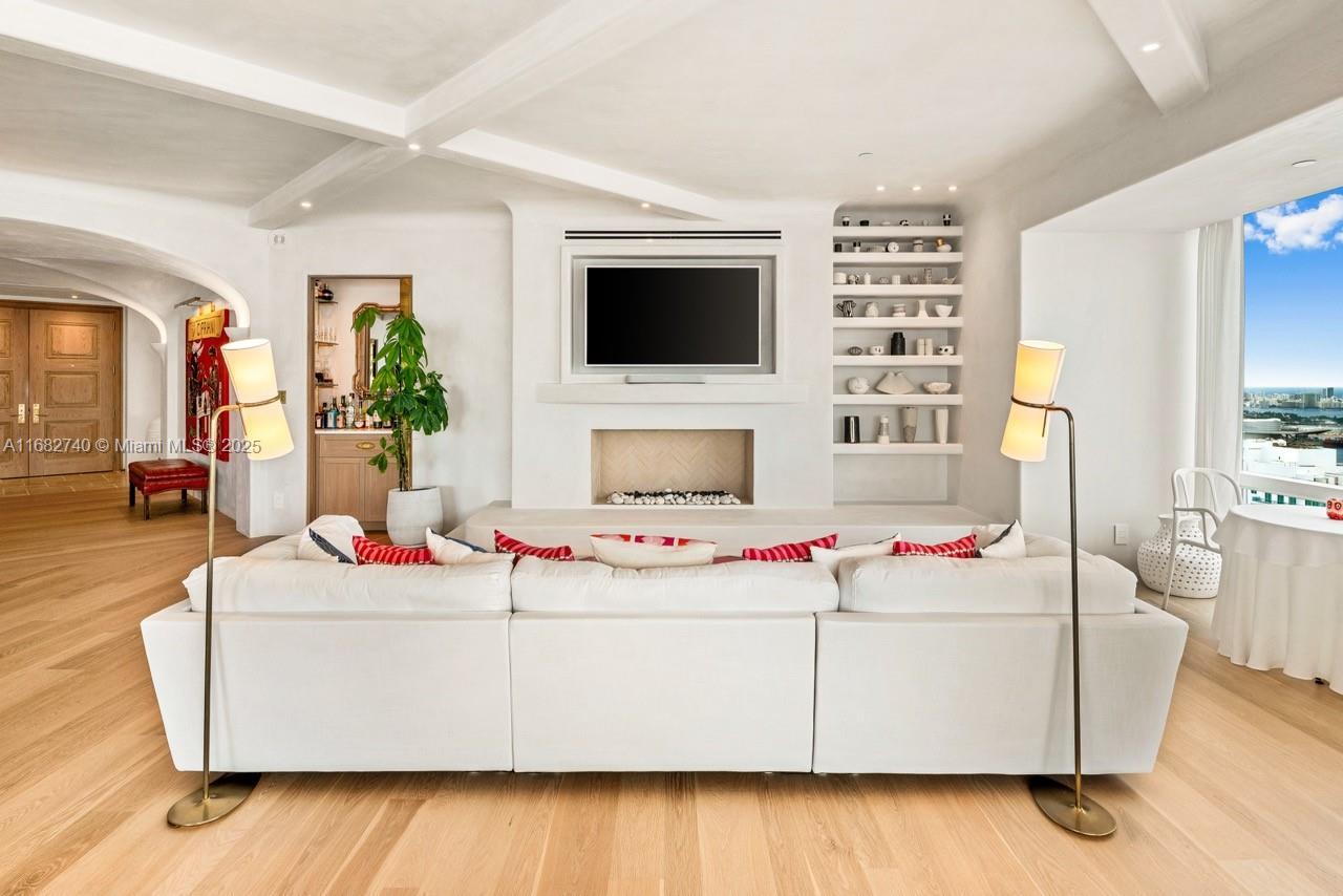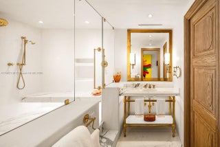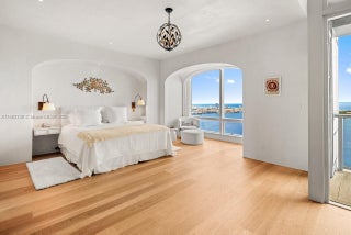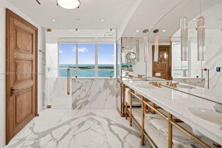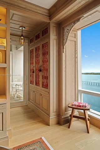 Stunning completely renovated and rarely available corner unit at the Four Seasons Residences, blending sophisticated design with the serenity of Ocean and Bay surroundings. Spanning 3,698 SF, the carefully curated unit boasts a 3-BD, 4.5-BA layout, with elegant archways, white oak flooring, fireplace, automated shade system, and whole-house water purification system. A custom gourmet kitchen is appointed with marble countertops, brass fixtures, center island, premium appliances, and beveled glass pocket doors. The primary suite offers panoramic water views and an expansive walk-in closet. Highlights include a private elevator, impact windows and doors, pantry, laundry room, 2 parking spaces, and access to world-class amenities, including 2 Equinox gym memberships.
