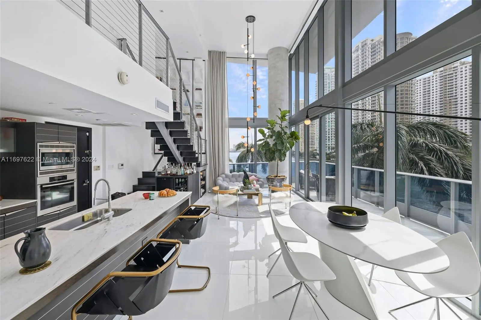 Welcome to your Miami dream loft! Watch the yachts go by from this oversized terrace overlooking Biscayne Bay and the Miami River. Floor to ceiling glass frames this beautiful furnished 2 story loft. Impressive double height ceiling makes this home unique letting in an abundance of natural light by day and breathtaking Miami skyline views by night. Enjoy either of two onsite restaurants, world renown Zuma Restaurant or Area 31 Rooftop Restaurant. Amenities include rooftop pool with bar and food service, gym, and Privai Spa. Central location walking distance to many restaurants and bars, Brickell and downtown. Whole foods one clock away. Monthly rentals available from May - September 2026
