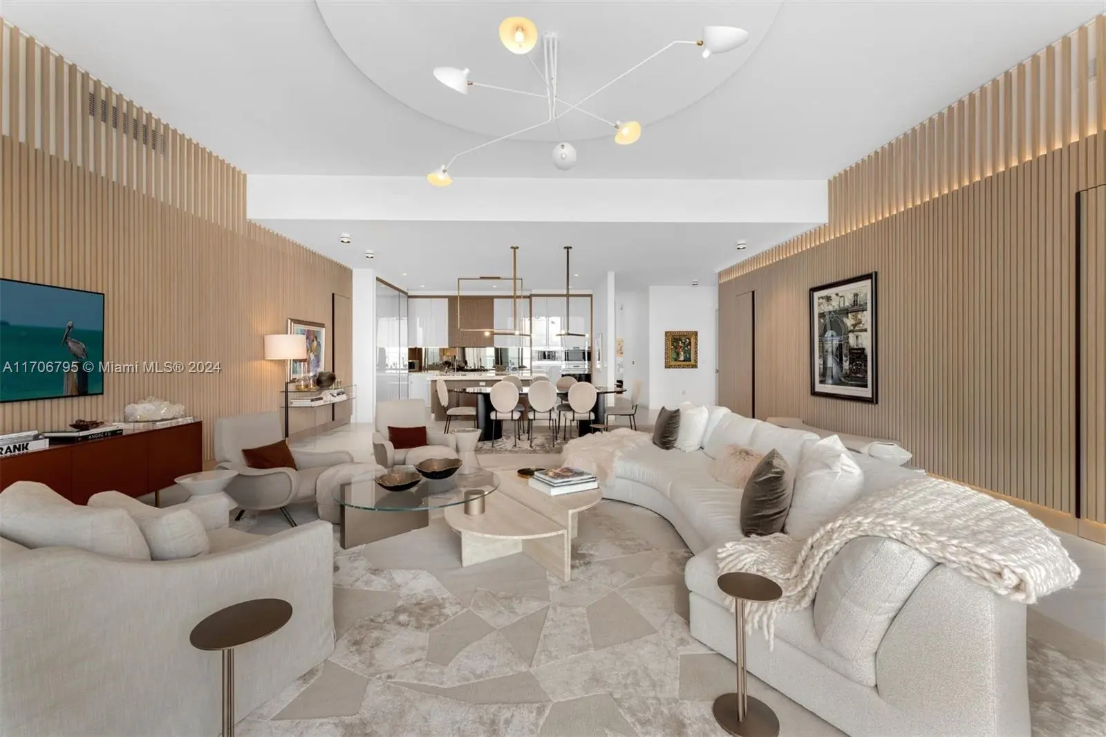 Extraordinary 4-BD, 4.5-BA combined unit in the highly sought-after One Park Grove in Coconut Grove. The residence showcases 3,365 SF of luxurious living with endless bay views. Boasting top-of-the-line finishes, every detail has been meticulously curated and expertly designed by renowned designer Deborah Wecselman to offer unparalleled quality and style. The sizable living and family rooms are adorned with elegant wood slat wall paneling and integrated lighting, creating the perfect ambiance for entertaining. A gourmet eat-in kitchen offers ample counter space, high-end cabinetry, and premium appliances. The entire apartment is graced by exquisite porcelain flooring, both indoors and out, adding a touch of timeless elegance. Enjoy a variety of world-class amenities at One Park Grove.