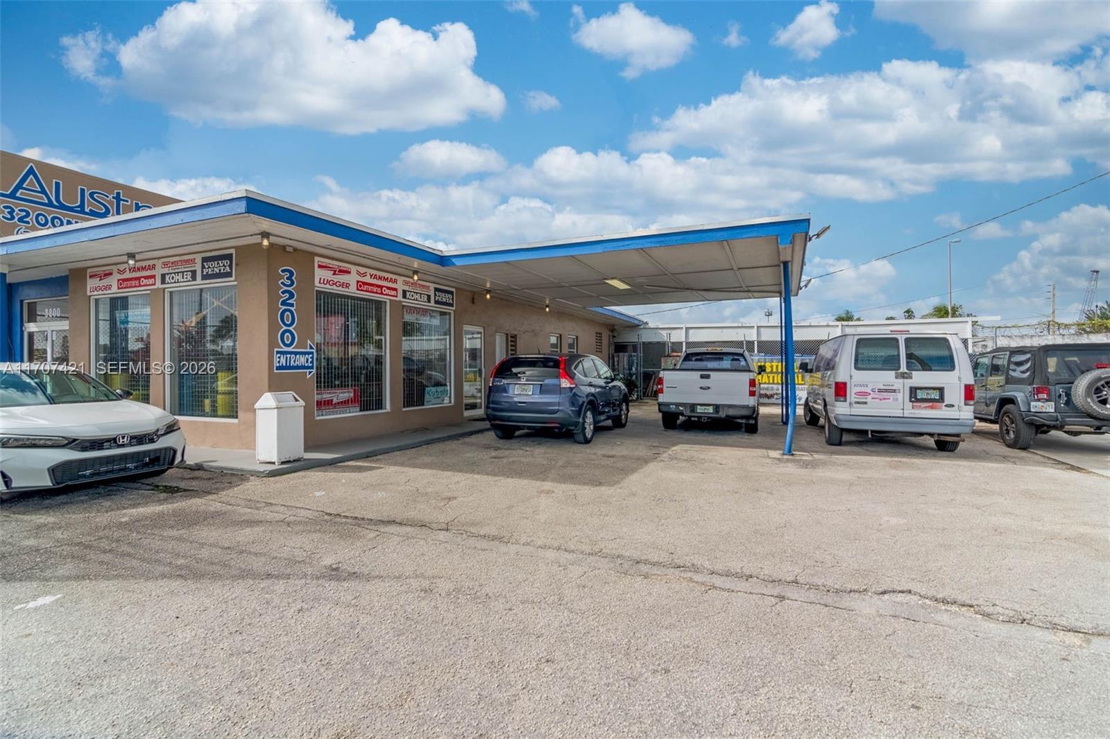 Unique corner property facing NW South River Drive in the Palmer Lake district. Approximate 5,158 square feet that includes a retail and office space and the warehouse adjacent to it (the second warehouse is available for lease separately), additional storage space and 3 bathrooms . Hard to find parking space available in front of the building, zoned for automotive/marine use , excellent location near the airport, car rental companies and one of Amazon's warehouses.