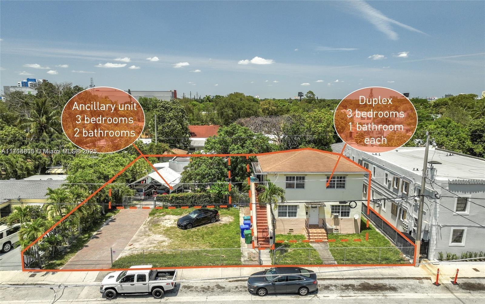 The subject property consists of two separate structures sitting on a 10,000 SF lot; a duplex with 3 bedrooms and 1 bathroom each on both the top and bottom floors, as well as an ancillary unit with 3 bedrooms and 2 bathrooms. All units are around 900 SF each. The property is currently 100% occupied with rents at $1,995 per month and a total gross income of $71,820. Rents are on a month-to-month basis and are determined to be under-market. The property is best seen as a covered land play, offering an investor the opportunity to ultimately take advantage of the Wynwood Norte NRD-2 zoning overlay for low-intensity infill development. The site carries an increased density of 150 d/U per acre, allowing for approximately 33 units. Seller Financing is available at very favorable times