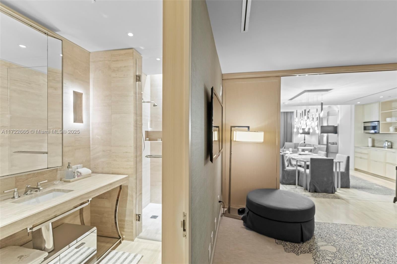 Welcome to a coastal paradise where luxury of St Regis meets the mesmerizing rhythm of the ocean. Presenting an extraordinary opportunity to embrace the ultimate seaside lifestyle, this oceanfront condo unit boast breathtaking ocean views and expansive over 1400 sq. feet of pure elegance. Offered decorated by renowned Yabu Pushelberg and fully furnished. 1 BEDROOM PLUS a spacious DEN, which is converted to the second bedroom with the sliding door, 2 full bathrooms. Full access to all 5-star resort amenities St Regis may offer. 4 gourmet restaurants, state of art Spa and fitness center, butler, concierge, private pool, and beach services. Cross the street from the well-known Bal Harbour shops. SHORT TERM available!!! Check broker's remarks.