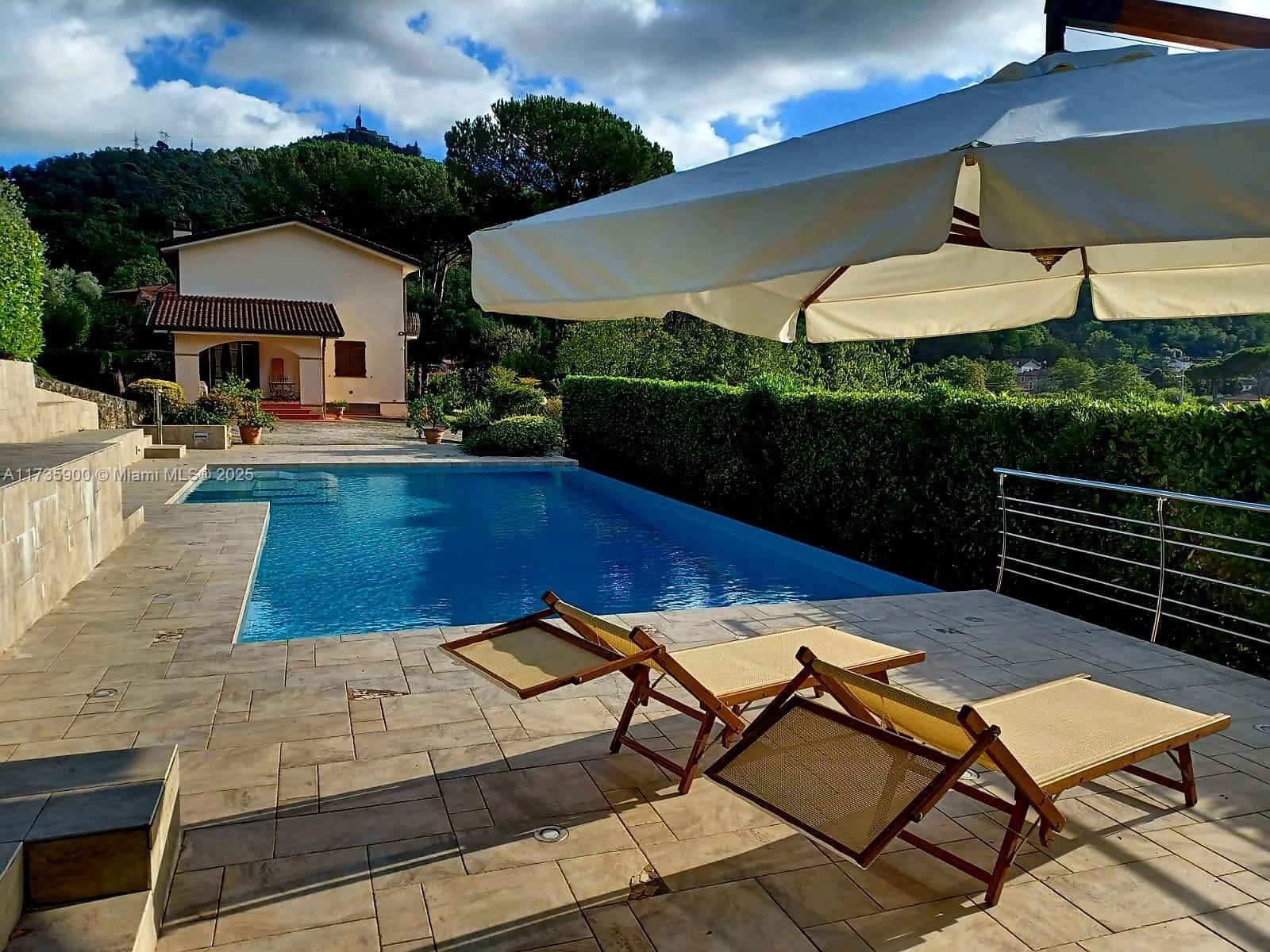 Experience the true essence of Tuscany in this stunning 3-Bed., 4-Baths, more than 3 acres lot, Villa & Guest House 2/1. Picture yourself waking up to breathtaking views of Camaiore, surrounded by olive groves and fruit trees, as you sip your morning coffee on your private terrace. This home perfectly blends classic elegance with modern comfort, featuring a spectacular swimming pool and a charming separate Guest House right by the pool/spa, perfect for hosting guests or as an Airbnb rental opportunity. Solar panel & own water well. Just minutes from the charming town of Camaiore and the exclusive Forte dei Marmi, as well as Pisa, Lucca, and the Versilia beaches, this villa offers the ultimate retreat for those seeking luxury, tranquility, and the timeless allure of Italian Tuscan living .