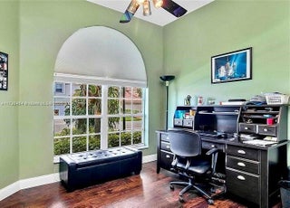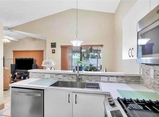 Sporting a suite for a live-in babysitter or healthcare provider this beautiful home is at The Gables in Weston. This home features an open, split floor plan. Knockdown ceilings throughout the house, BRAND NEW Roof 2019 and rain gutters, New A/C February 2020. 3 bedrooms, 1 office, 2 charming bathrooms, 2 car garages, nice neutral tile floors throughout the main living space and laminate wood mahogany-look flooring in all 3 bedrooms. Huge master (in-law/guest) suite with walk-in closet, master bath separate tub/shower. Gas stove. Upgraded stainless steel appliances. Volume ceilings, large family room. Laundry room with newer washer and dryer. Close to restaurants, shopping, three airports, and just half of an hour from the finest beaches.