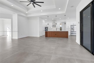 Discover the epitome of modern luxury, where smart home technology meets exquisite design. This home features Alexa integration through ceiling speakers; the living room has a wooden TV wall & a fireplace, ceramic floor tiles, extra-high ceilings & grand doors for an open, light & airy feel. The kitchen is a chef's delight w/wood cabinets & high-end appliances, a washer & dryer. The master bedroom offers its cozy retreat with a fireplace & imported Spanish wood bathroom cabinet. Outside, marble tiles enhance the front & back yard, a terrace & BBQ space equipped with ceiling fans. The property also includes a 3-car garage with an insulated door & epoxy flooring. The pool area is secured by a complete fence featuring smart Pentair equipment & Rheem pool heater for continuous enjoyment.