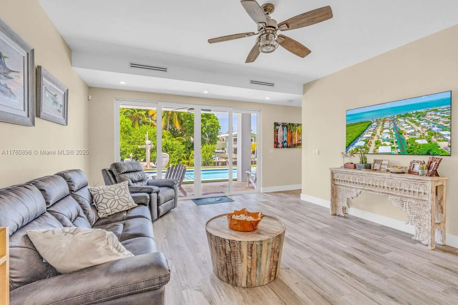 LUXURY CANAL FRONT HOME IN ISLAMORADA! Brand new offering of the most exquisite coastal designed home offering spacious floor plans, entertaining spaces, and oversized rooms. This meticulously maintained home offers a split floorplan with a living room, wet bar, sizeable bedroom and full bathroom on the ground floor overlooking the outdoor kitchen and in ground pool. The second level boosts 3 bedrooms and 2.5 bathrooms, a great living room, pristine kitchen, and walk in laundry room/ office. The fenced in backyard welcomes you to enjoy your private yard surrounded in turf. The concrete dock holds a 20,000 lb boat lift and room for multiple boats! Along with this stunning home, you will also have access to the White Marlin Private Homeowners Beach, and all the close amenities!