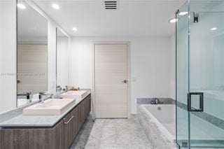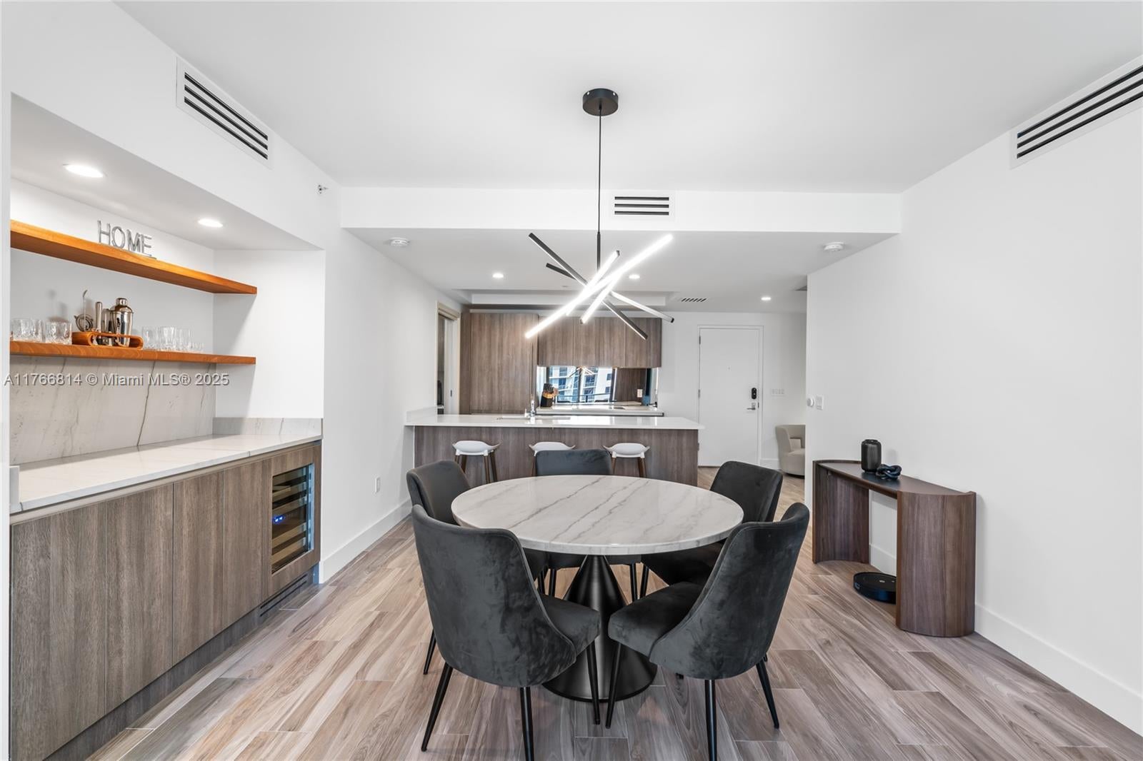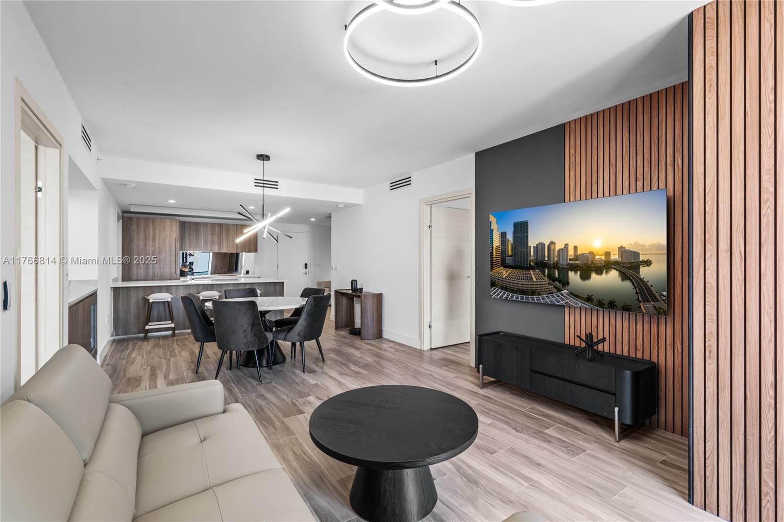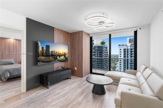 Fully remodeled 2 Bed + DEN / 2 Bath residence at SLS Lux featuring a private foyer, modern design with wood-accented walls, an expanded kitchen with custom cabinetry, and brand-new stainless steel appliances. Enjoy west-facing views of Brickell, the Miami River, and glimpses of the bay—perfect for watching the sunset. Located directly across from Brickell City Centre, steps from world-class dining, shopping, and the vibrant Brickell nightlife.