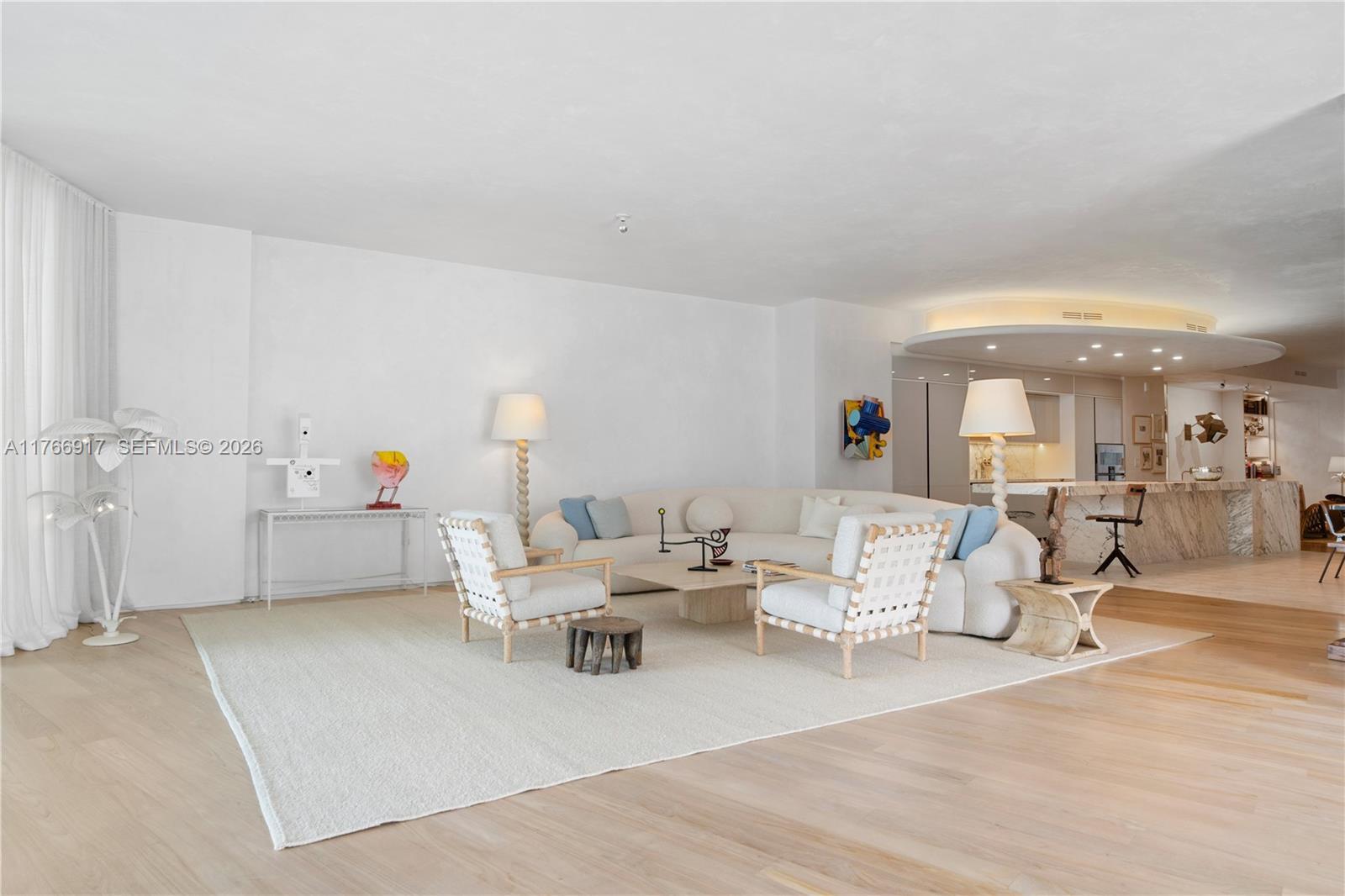 MID-CENTURY MINIMALIST INTERIORS BY AUSTIN HARRELSON WITH STUNNING SUNSET VIEWS OVER THE BAY & CITY SKYLINE FROM THIS SPRAWLING 5-BEDROOM RESIDENCE AT MONAD TERRACE BY AWARD-WINNING ARCHITECT JEAN NOUVEL! Flowthru 5 Bed + 5.5 Bath Residence in 3,936 SF wrapped in 1,474 SF Terraces. Private Foyer greets you to Oversized Great Room. Custom Wall-to-Wall Bookcases + 10 FT Ceilings in Elegant Venetian Plaster. Poliform Kitchen in White Calacatta Gold Marble w/Sculptural Cantilevered Marble Island & Wine Rack + Gaggenau Appliances. Custom Oak Breakfast Banquet. Primary Suite w/Bathroom in Calacatta Gold Marble & Floating Wood Vanity + Steam Shower & Ago Soaking Tub by Antonio Lupi. Laundry Room Doubles as Service Quarters. Diagonal Teakwood floors. Private Elevator with Direct Access to Garage.