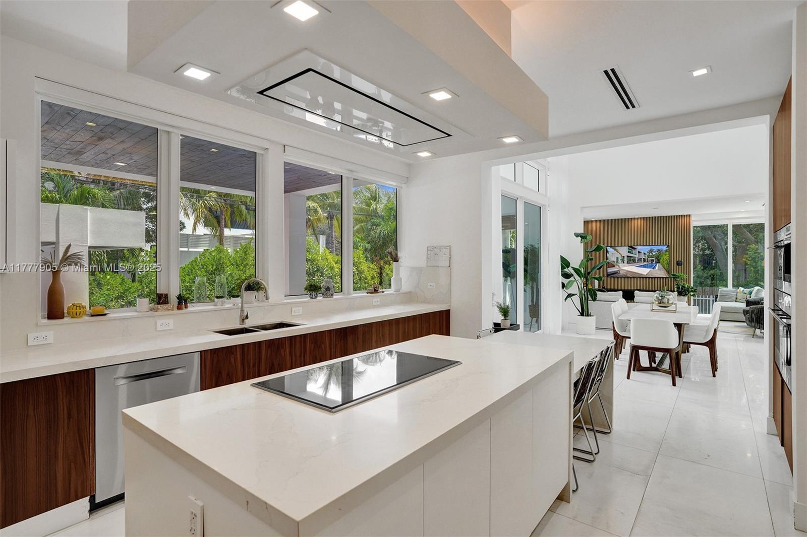 Luxurious coastal living in the exclusive island community of Key Biscayne, Miami. Designed by renowned architect José Sanchez, this 2020 home boasts a sleek architectural design, double height ceilings, floor-to-ceiling windows and abundance of natural light. High-end finishes and materials: marble floors, Italian cabinetry, and a gourmet kitchen with top-of-the-line Sub-Zero/Wolf appliances. Exterior features perfect for entertaining: spacious outdoor terrace, outdoor kitchen, newly refinished infinity pool and deck, new front door. A rooftop terrace to enjoy stunning sunset views. Five oversized bedrooms, en suite baths, walk-in closets and balconies. Close to the yacht club, pristine beaches, marinas, world-class golf course, shops and dining. Living area 4100 sf per architect.