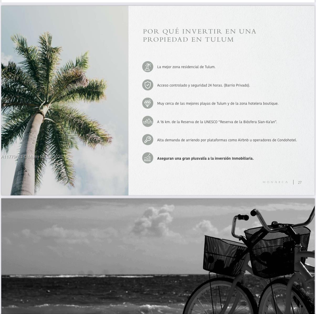 Stunning Apartments of 2/2 in Tulum’s Best Area. Located in a prime, gated community with 24/7 security and controlled access, just 5 minutes by car from Tulum’s most beautiful beaches. Each unit features air conditioning, elegant finishes, marble floors,custom wood closets and bathroom vanities, electric water heaters, modern one-piece toilets, and electric cooktops.Resort-style amenities include a swimming pool, palapa bar with restrooms, hammock area, grill lounge, holistic center, massage room, yoga space, gym, and more. Situated in one of the top tourist destinations in the Riviera Maya, these apartments have high rental demand through platforms condo-hotel operators, making them an excellent source of income. Move-in ready.Only 6 Units Available. For More info contact Listing Agent