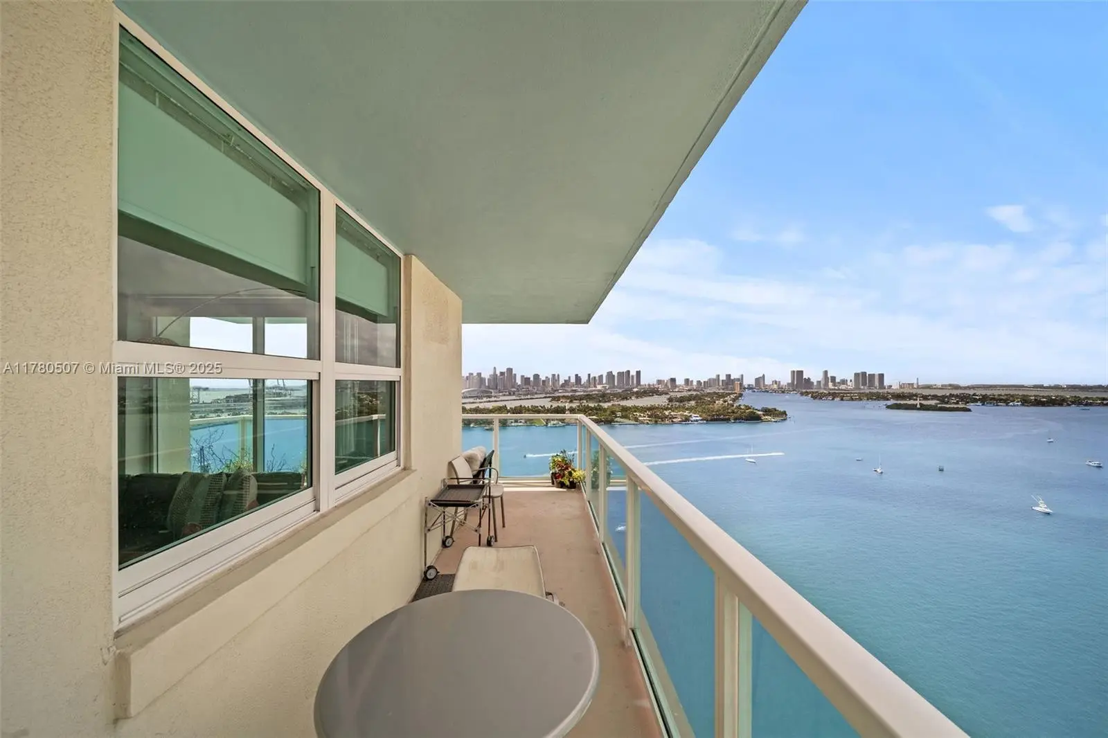 Premier corner line at The Floridian with a wraparound balcony and stunning views of Biscayne Bay, Star and Palm Islands, and the Downtown Miami skyline. This spacious 2-bedroom, 2-bath residence features a split floor plan, marble floors, an open kitchen with stainless steel appliances, updated closets, and an in-unit washer and dryer. Includes assigned garage parking. The Floridian offers resort-style amenities including two bayfront pools, a fitness center, hot tub, tennis court, 24-hour security, concierge, and valet service.