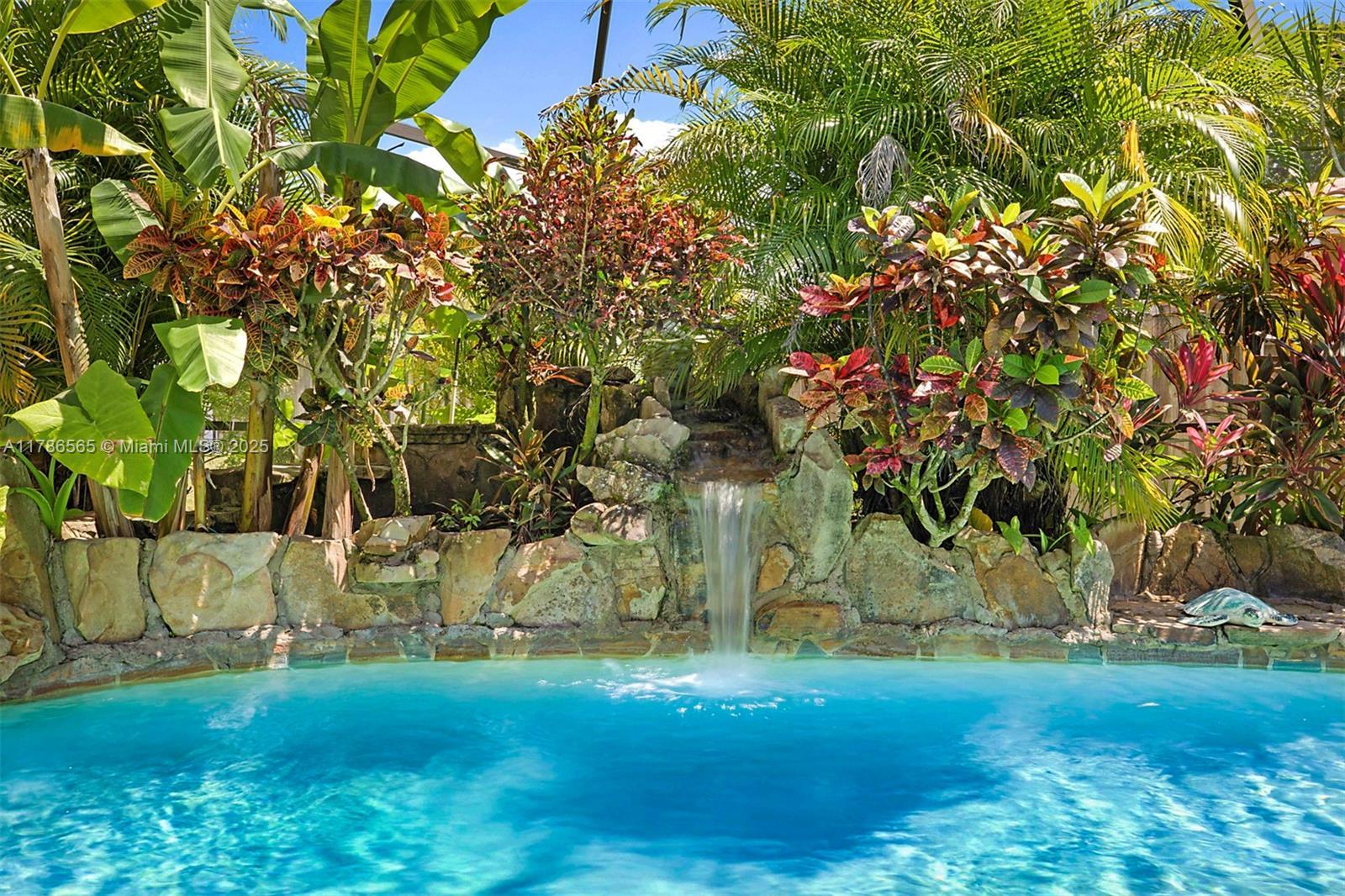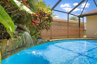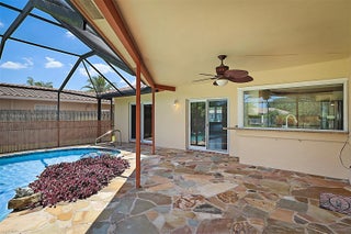 This tropical oasis is the perfect place to call home, nestled on a quiet street in The Windings and situated on a expansive 8,625 sqft waterfront lot. Freshly painted exterior. New lush landscaping lines the driveway & walkway, welcoming you to your home. Once you enter through the front door you're immediately greeted by the natural light, vaulted ceiling and flowing floorplan. Split bedrooms. Freshly painted interior. Upgraded kitchen w/ Stainless appliances. Picture window over the sink offers stunning views tranquil screened in pool, tropical waterfall feature and more lush landscaping. Upgraded 2022 Impact Windows throughout & Brand new 2025 hurricane rated garage door. Newer 2019 roof still under warranty, 2025 AC, Solar heated pool. No HOA. Portable generator w/ hook up and more!