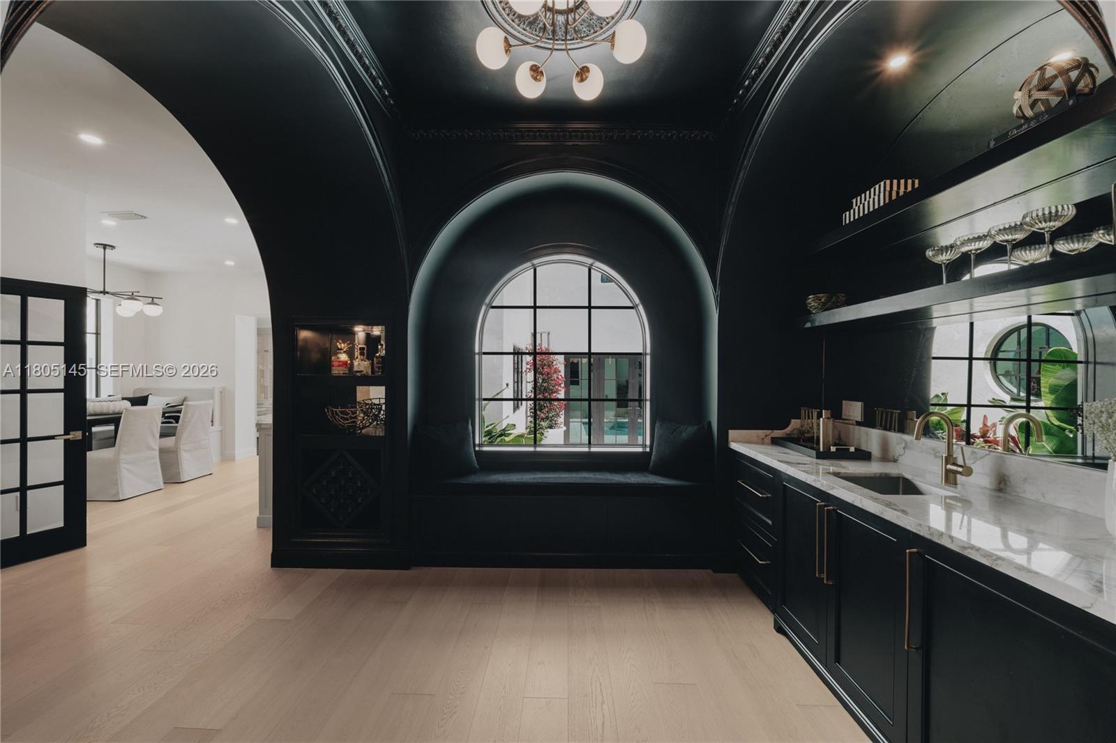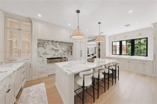 Welcome to El Tesoro, a New Construction 4528 sq ft, 6bd/5.5ba Mission-Style Estate set on a 10500 sq ft lot in guard-gated Historic Morningside’s most coveted stretch (55-60th) celebrated for bay views, wide tree-lined streets, peace & privacy. Large new construction homes are incredibly rare here due to historic constraints, especially turnkey, furnished and outside the flood zone. Inside, 15 ft ceilings are accented by arches that echo the Mission exterior, along with custom woodwork, coffered ceilings, wainscoting & beams. Every room showcases custom cabinetry paired with marblework intricately carved onsite. A limewashed primary offers 2 terraces, nursery, walk-in closet & indoor/outdoor wet room. El Tesoro is an oasis minutes from Design District, Downtown, Brickell, Beach & Airport.