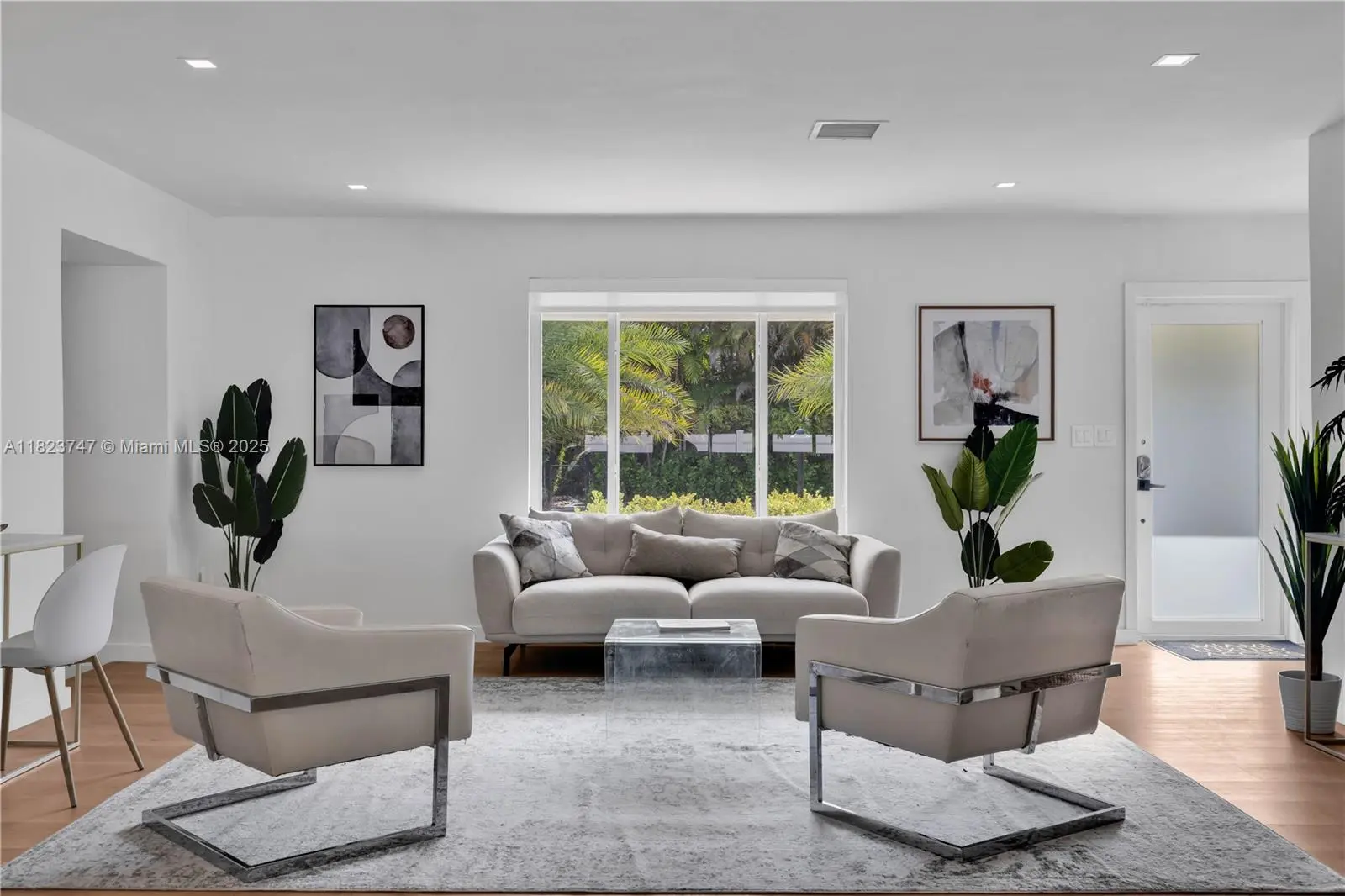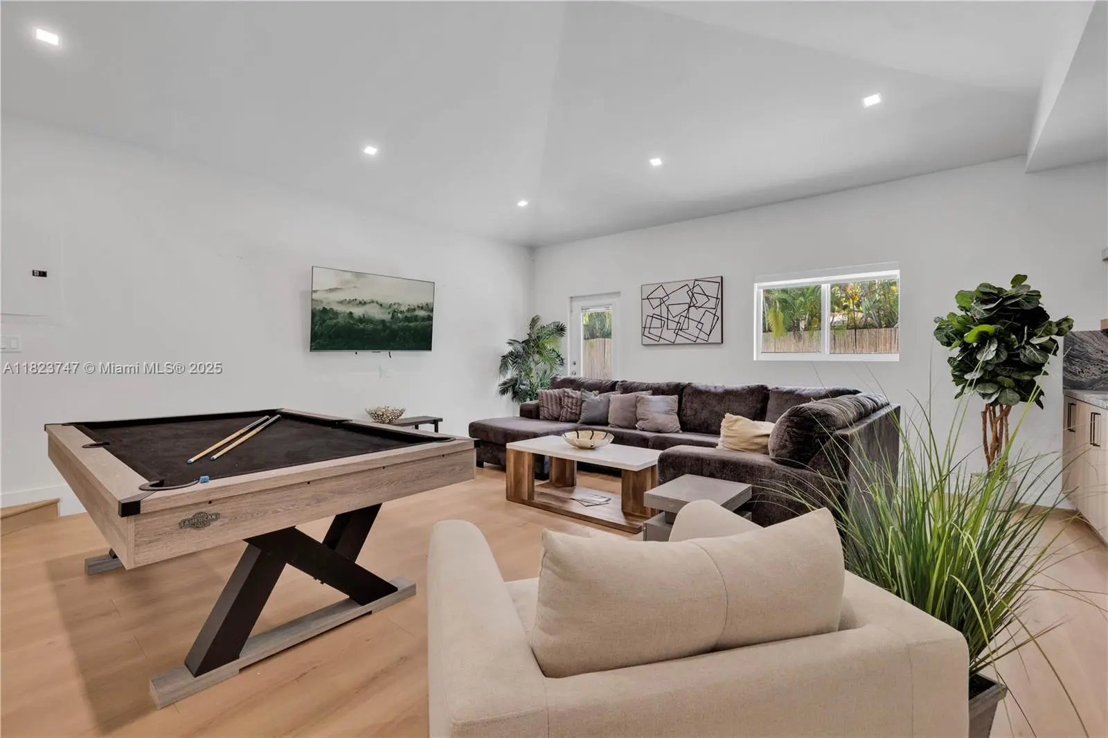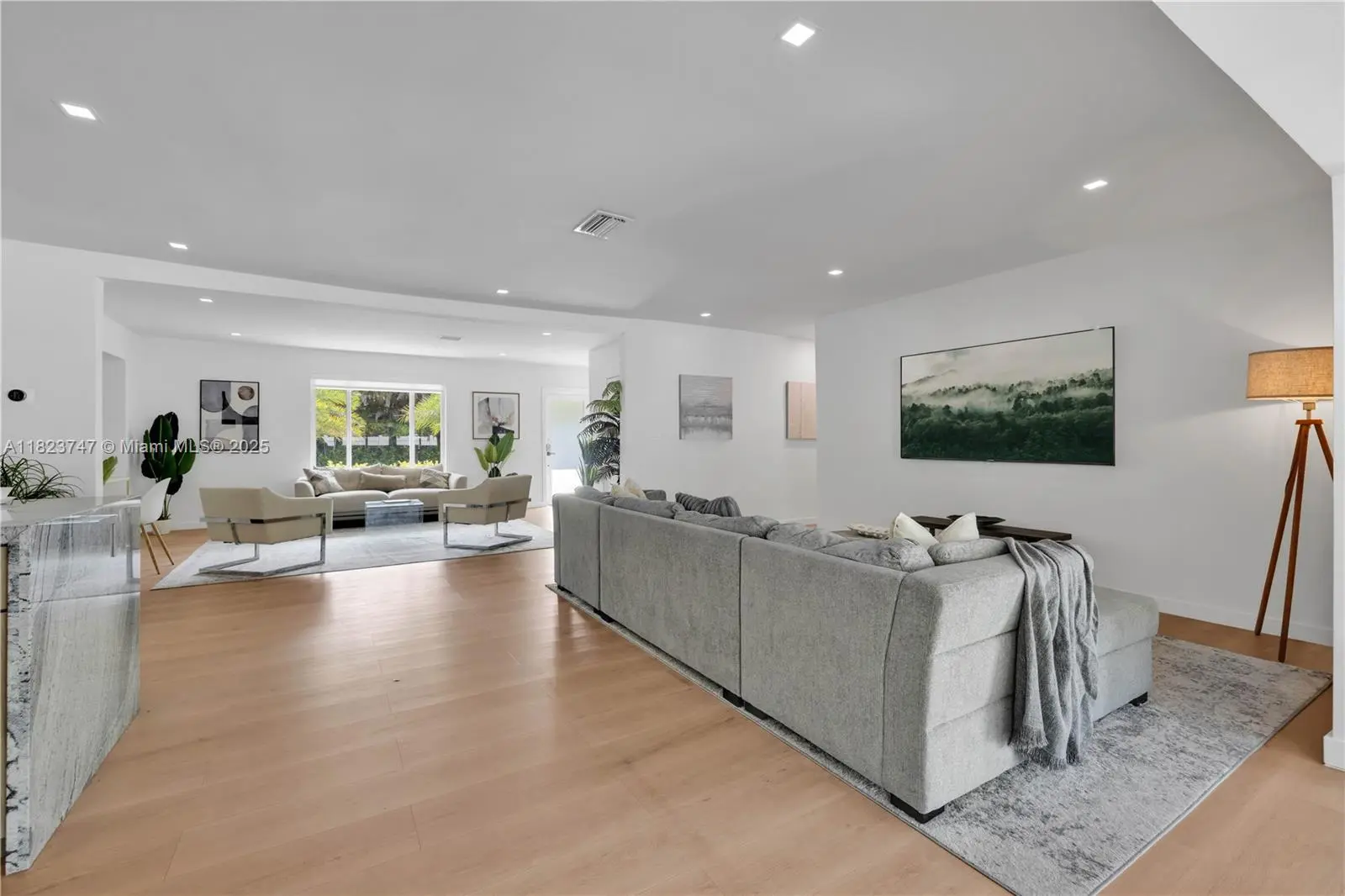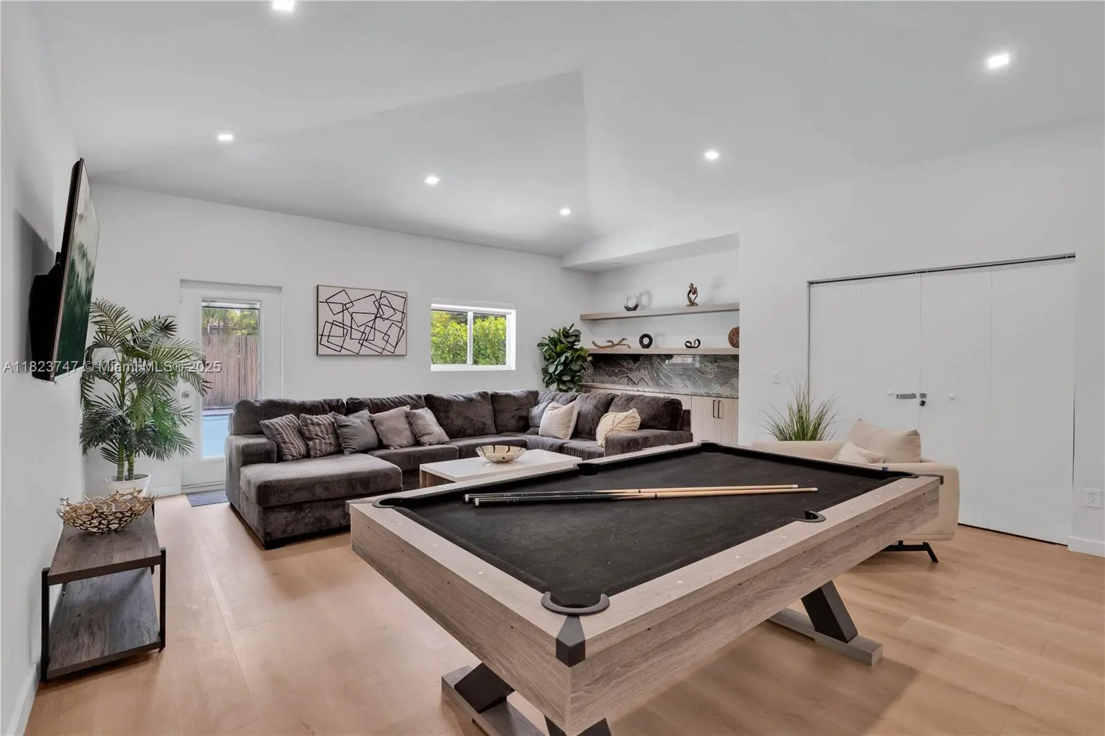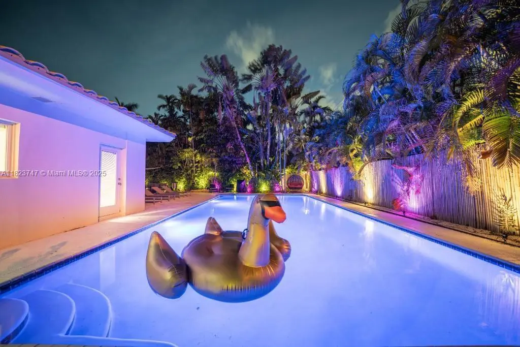 MUST SEE! If you're looking for one of the largest Biscayne Park 4-bedroom pool homes available, check this out (Bitcoin accepted)! Beautifully updated 4 bed-3.5 bath midcentury pool home ~3,000 SF of interiors on a large 11,585 SF lot. Great open flow plan, three living areas, dining room, and eat-in open island kitchen, plush multiple lush entertainment gardens. Four spacious bedrooms (two ensuites) including primary with majestic spa-like double-vanity bath, freestanding tub, and a massive shower with 16 power jets and dual rainfall shower heads. Great features: impact windows-doors, private powder room, huge 20’x40’ pool, multiple patios, mini golf, and outdoor moonlight movie screen. You’ll feel like you’re living in “paradise” in this dreamy Biscayne Park tropical resort-style home!