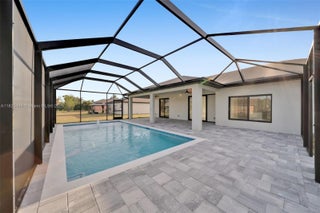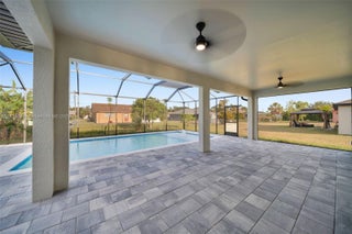 Location, Location, Location! This brand-new pool home offers luxury and comfort with a spacious 14' x 28' pool featuring a sundeck and a fully screened-in lanai. Inside, you'll find soaring vaulted ceilings, 8' doors, and elegant 24" x 48" tile throughout. The kitchen boasts plenty of cabinetry, and the home is built with hurricane-impact windows, a paver driveway, and a 3-car garage. It also includes a whole-house reverse osmosis system for pure, clean water throughout. Stylish, solid, and move-in ready!