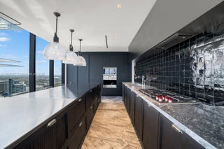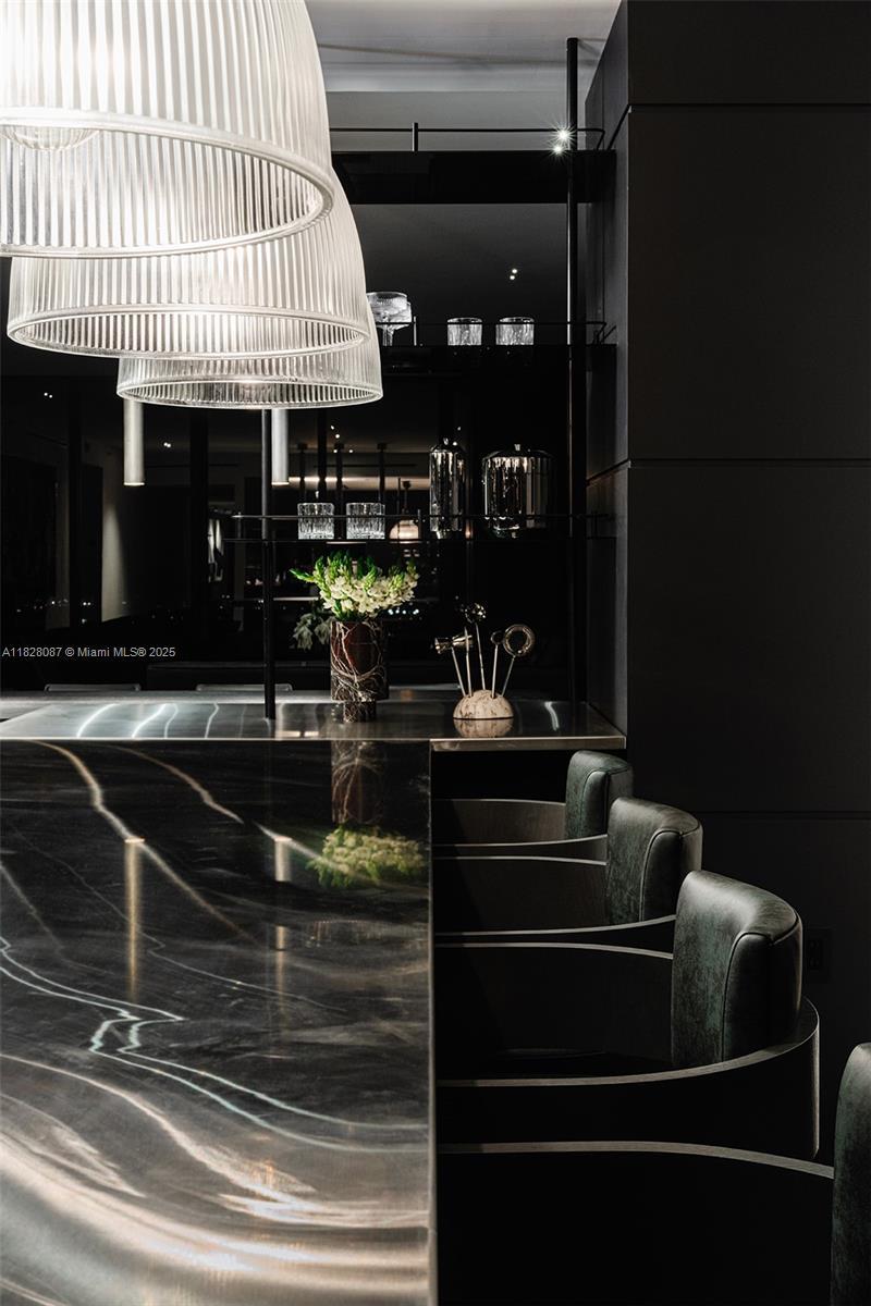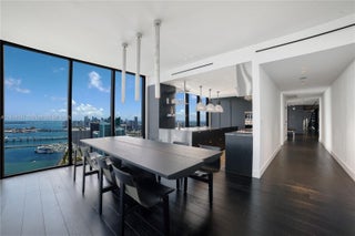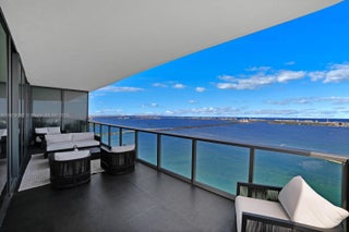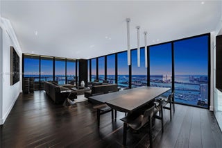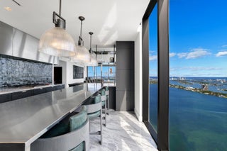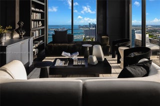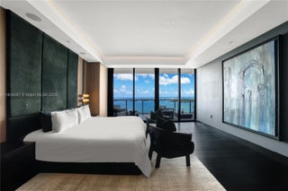Unparalleled elegance meets sophistication in this one-of-a-kind residence. Customized & reconfigured into a 2BD layout with a theater w/ Mirro ceiling lighting system & custom blue velvet sofa that converts into a bed; expansive executive suite w/ a bespoke desk & ample seating by Monologue & StudioTwentySeven; a sophisticated library w/ custom shelving. Open living space is wrapped in floor-to-ceiling glass, revealing panoramic bay & city views. Custom-stained, burned, & wire-brushed oak floors by Urbanik Surfaces run throughout. The kitchen is a showpiece w/ Nuvolato Apuano marble countertops, Italian marble flooring, GAM Woodwork cabinetry & chef-grade appliances. The grand primary suite, accented w/ walnut paneling, features a waterfront terrace, spa-like bath, & custom wardrobe.