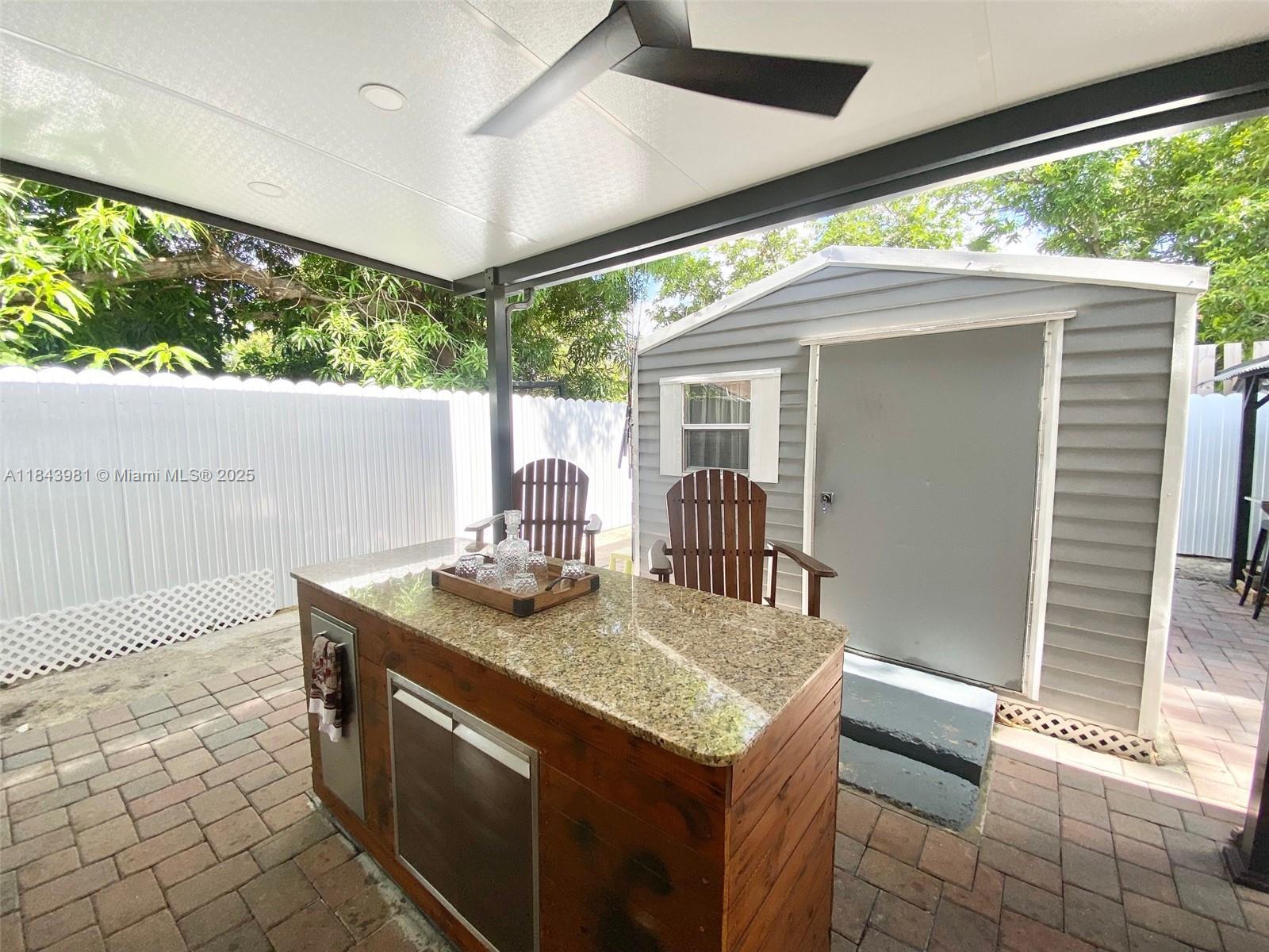 Awning(s), Barbecue, Enclosed Porch, Lighting, Outdoor Grill, Shed, Storm/Security Shutters