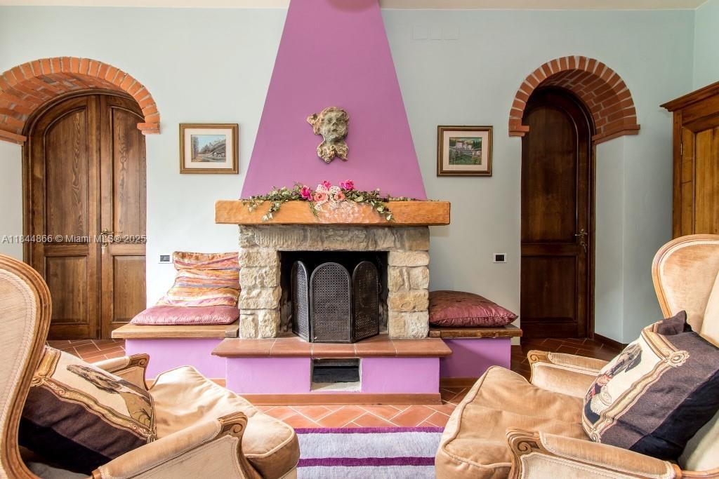 A stunning villa in Tuscany offering 3,552 sq ft of living space and a 646 sq ft terrace overlooking the garden. On the ground floor, there are 1,668 sq ft, including a spacious kitchen of 484 sq ft. The second floor also features 1,668 sq ft and includes 4 bedrooms, each with its own bathroom. The two bedrooms with pool views share a Jack and Jill bathroom. The villa is located just a few kilometers from Arezzo and less than an hour from Florence. It offers complete privacy while being conveniently close to the main road connecting to the major cities of Tuscany. Additionally, the property includes a connected but independent cottage—ideal for in-law quarters or maid quarters—ensuring the family’s privacy is maintained.