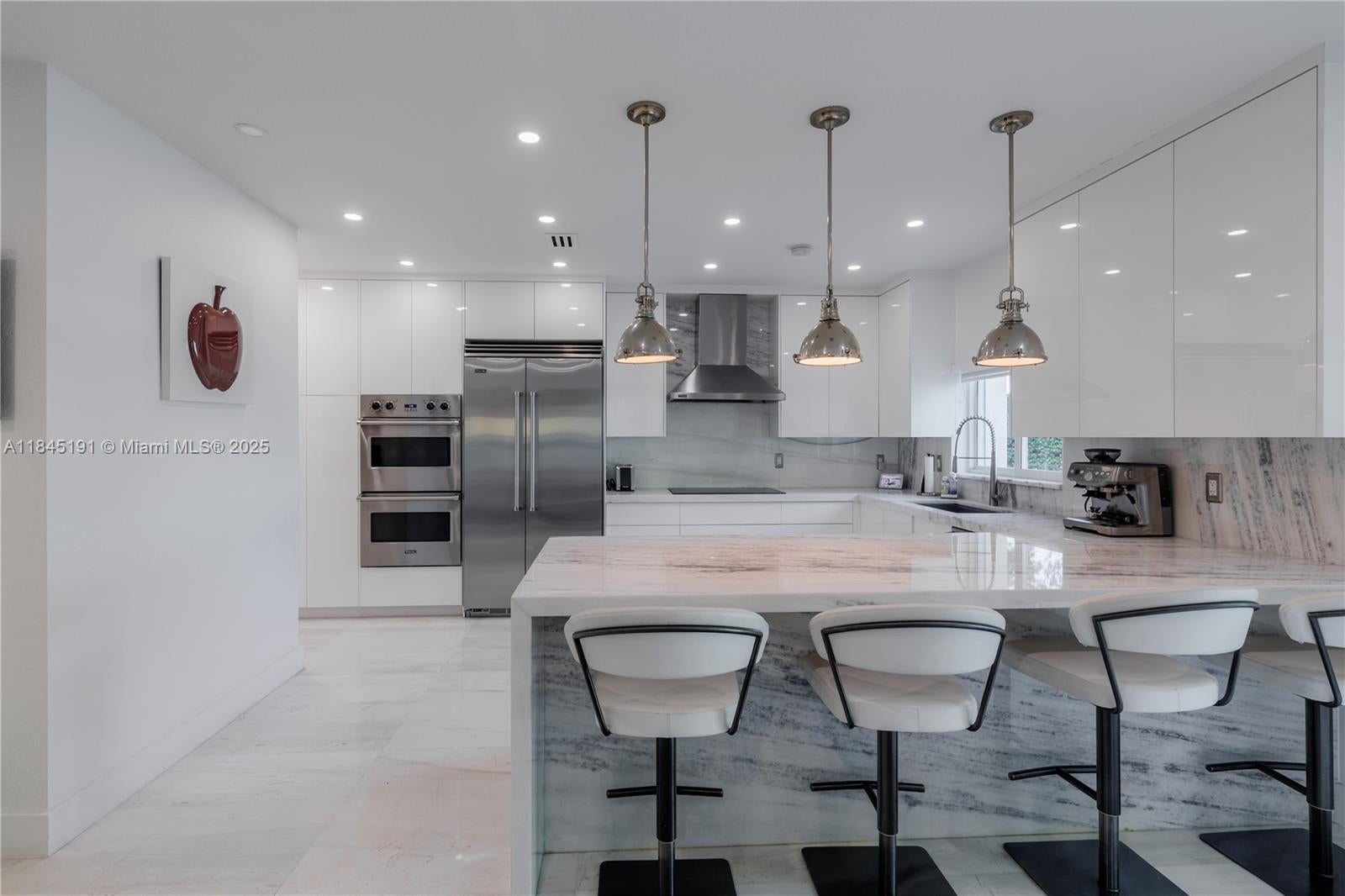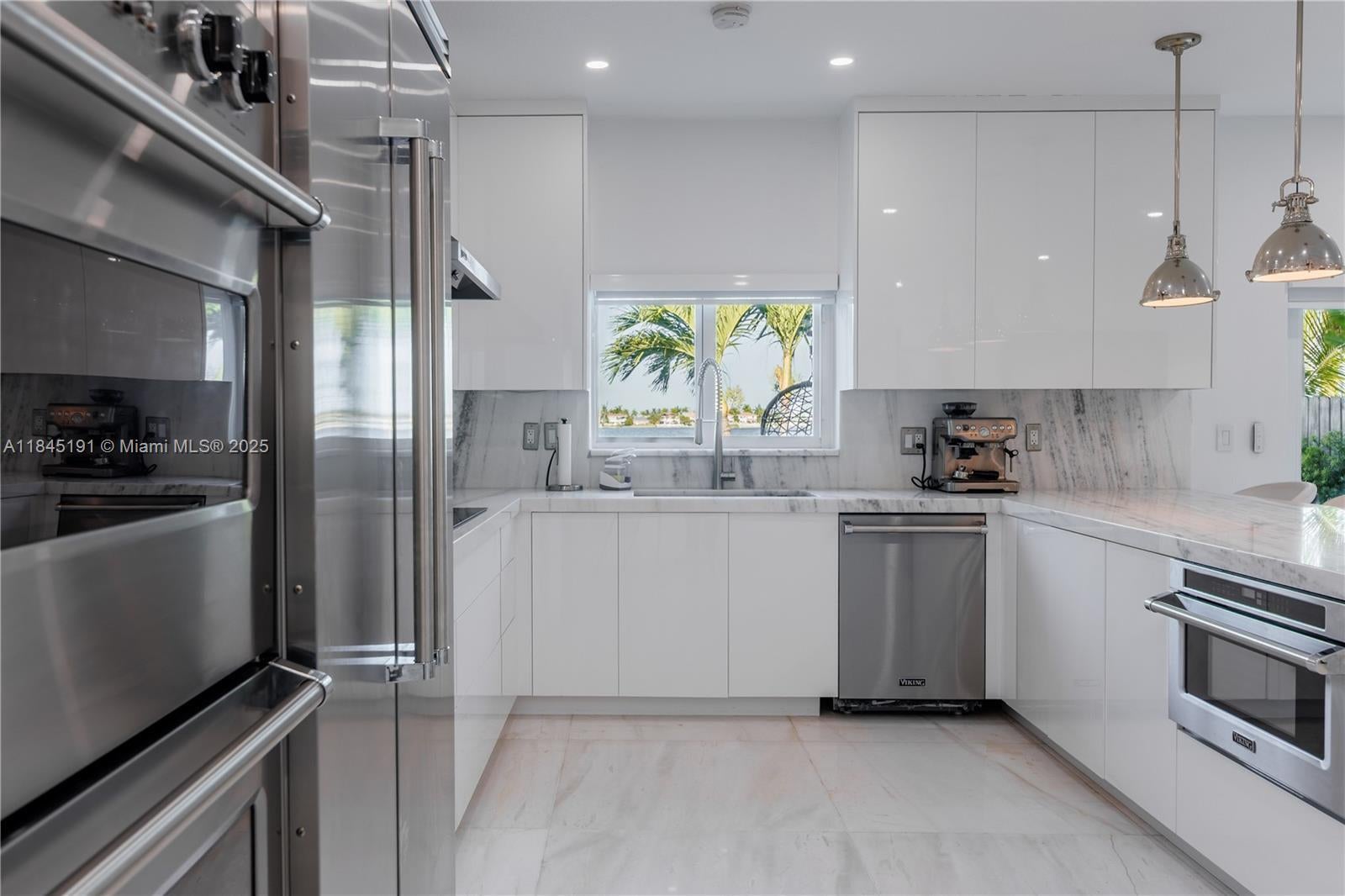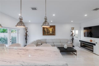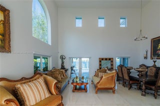 Welcome to this stunning two-story residence located in the exclusive gated community of Venezia Lakes. This beautifully upgraded home features 5 spacious bedrooms and 3 full bathrooms, with one bedroom and bathroom conveniently located on the main floor. Boasting 2,622 square feet of living space on an 8,395.8 square foot lot, the home offers elegant marble floors throughout, impact-resistant windows and doors, and a remodeled chef’s kitchen with high-end appliances, a marble island, and sleek white Italian cabinetry. All bathrooms are elegantly finished with floor-to-ceiling marble. The outdoor space is equally impressive, featuring a heated saltwater pool with jacuzzi, a two-car garage, and breathtaking lake views where you can enjoy magical sunsets .