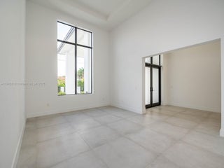 Stunning, elegant Mediterranean style home in one of Miami's finest neighborhood. Open concept, 14-16 feet soaring ceilings, modern, spacious and bright spaces waiting for the most discerning buyer. Completed in 2023 with top of line finishes to include, Quartz Countertops, Porcelain Floors throughout, Gourmet European Style Kitchen, Thermador Appliances, Marble Bathrooms. Oversized Master Suite with separate sitting/lounging area, dual closets. Security camera system, smart home features, sprinkler system, floor to ceiling fireplace, space for wine room. Expansive covered terrace, modern oversized pool with spa and swim out to enjoy the Florida lifestyle. Room for a Summer Kitchen, RV and/or boat.
