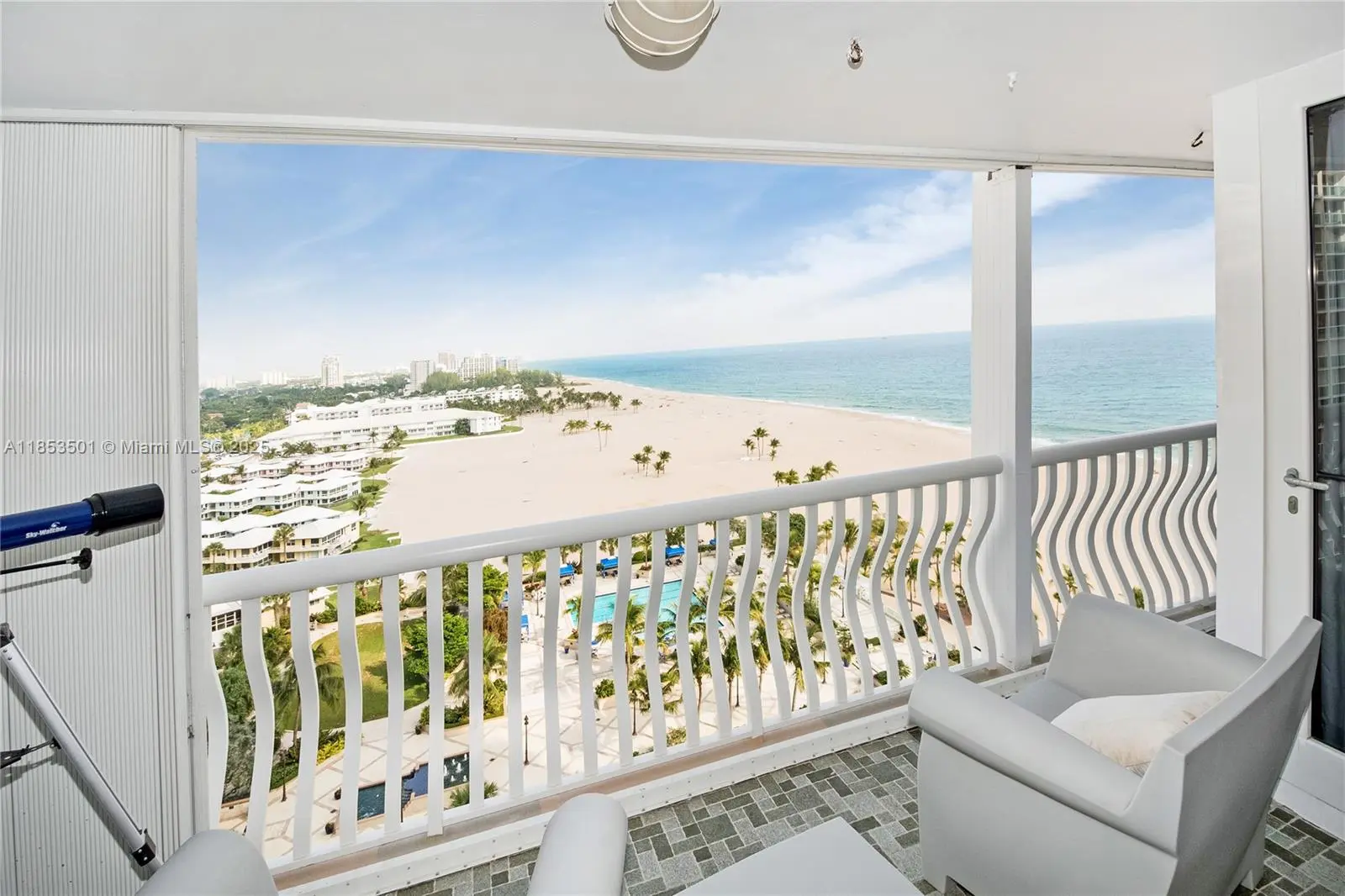 This one of a kind "thru" model has been completely renovated and is ready for this season! Designer decorated and features impact glass sliders plus storm shutters, motorized window treatments, custom cabinetry/closets, master spa bath with separate tub and shower, gourmet kitchen with wine cooler and more. Furnishings negotiable. Close proximity to airport, cruise port, Brightline train, Las Olas/downtown, restaurants & beach clubs. Five star resort amenities include grand lobby, restaurant, fitness center, guest hotel rooms, lush pools & beach service on the widest beach in Fort Lauderdale.