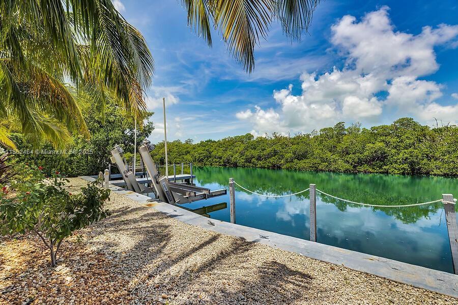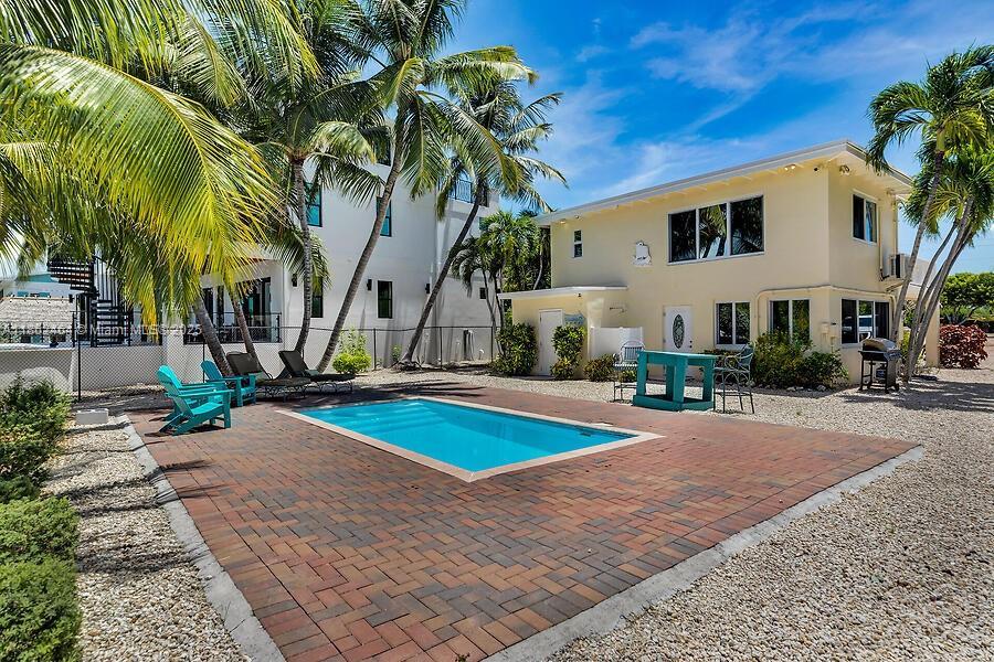 Bayside Waterfront on US1 where your dream lifestyle becomes a reality! Nearly 'Builder's Acre' (34409 SF) right in the heart of beautiful Islamorada MM77, just steps away from the vibrant Robbie's Marina area. This two-story CBS home features 2 bedrooms & 2 bathrooms, completely remodeled! Impact windows, tile floors thru-out, with an impressive 79 ft of concrete dockage complete with a lift, and sparkling pool with pavers, built in 2021 just 4 years ago! Partner with our trusted local builder, 'Native Construction,' and choose from a stunning selection of 'Spec' Homes tailored to your taste. You can opt to tear down the existing structure or design a 'Luxury Estate' right in front of the delightful two-story cottage! Don't let this incredible chance to '?Anchor in Paradise?' slip away!