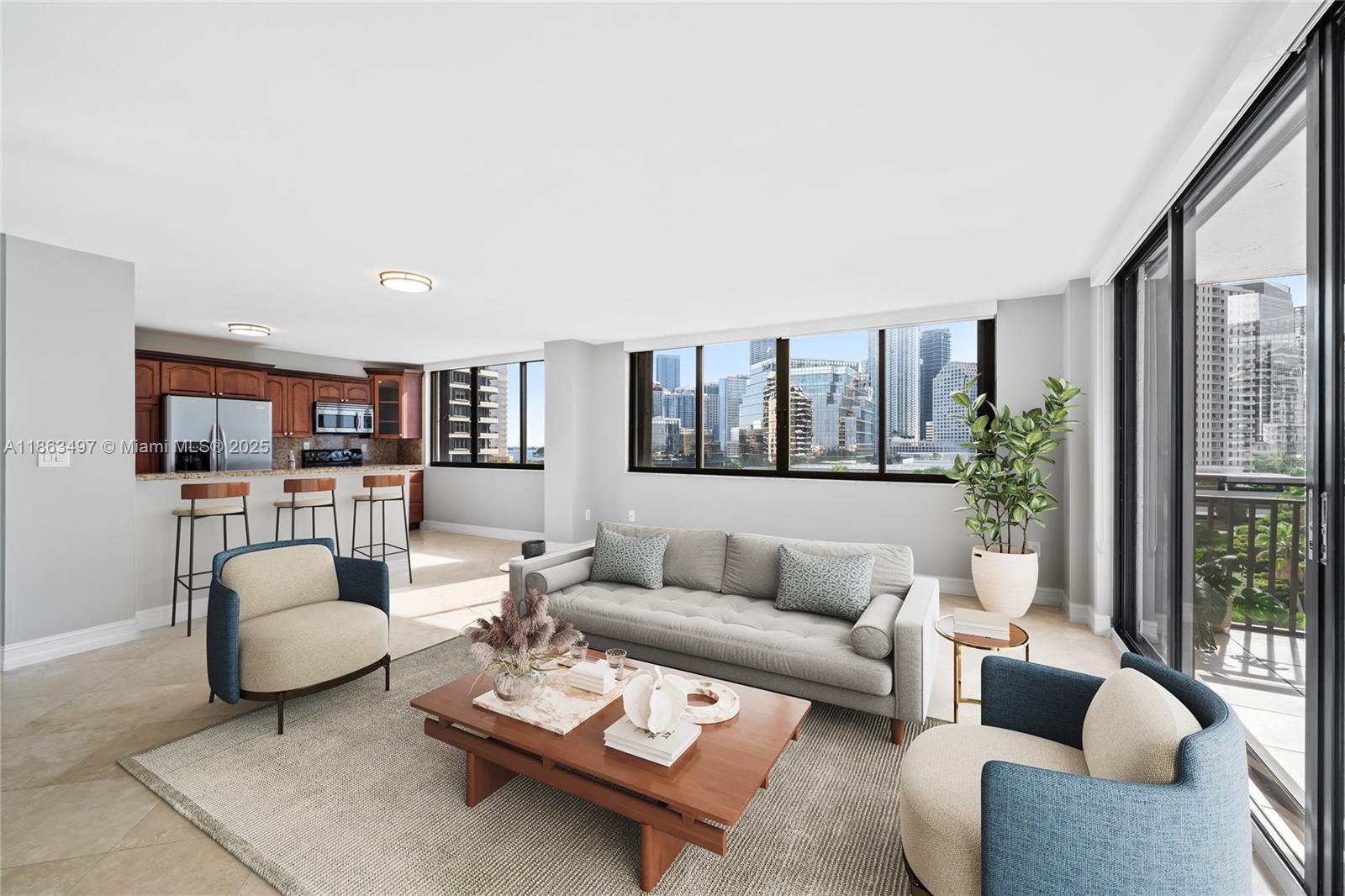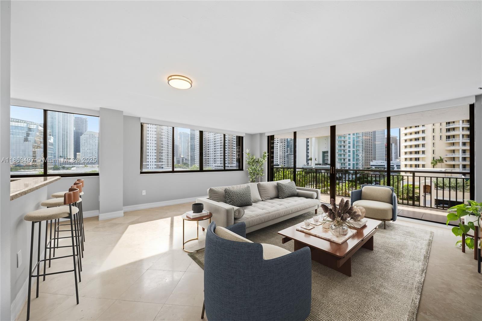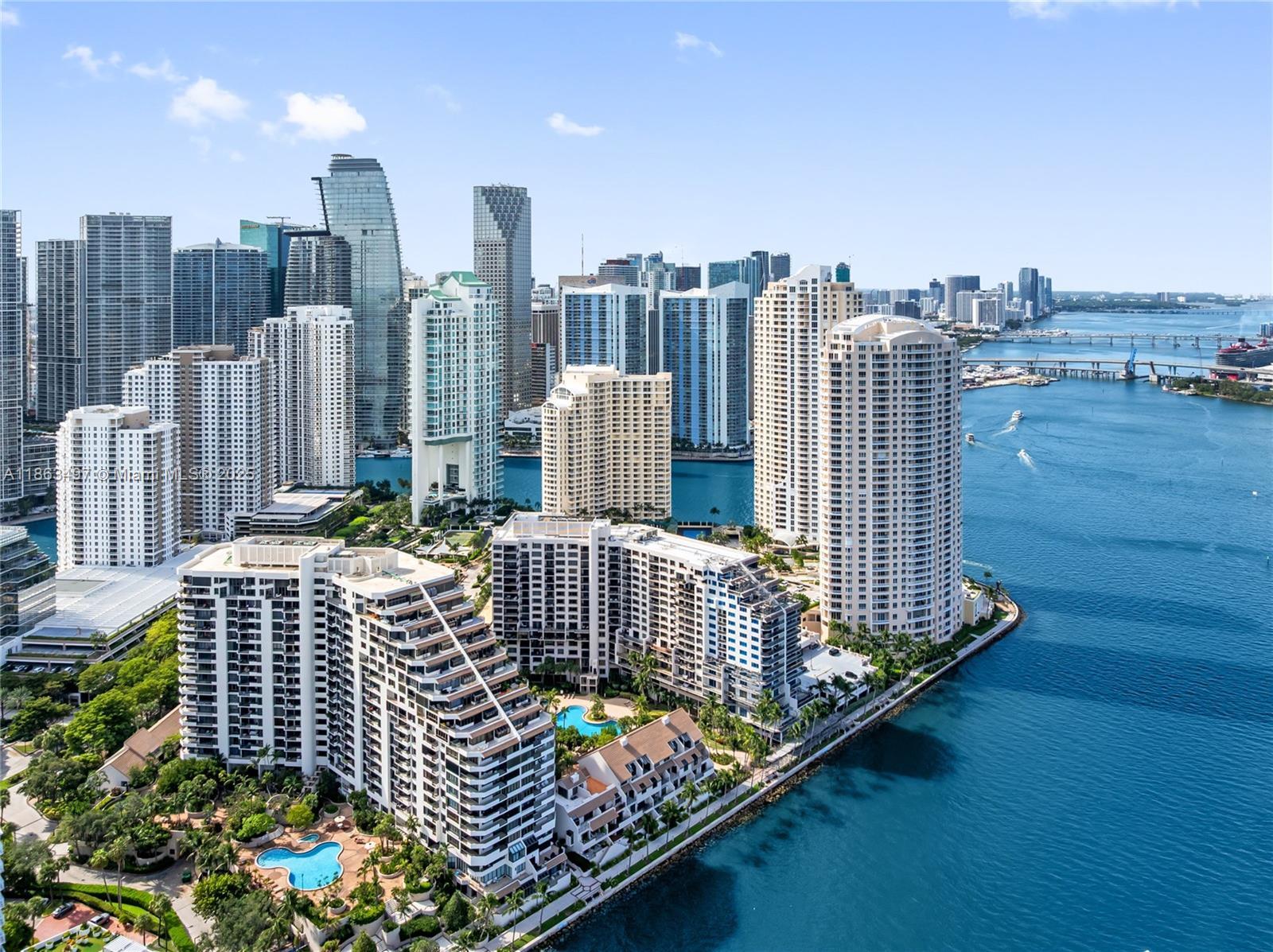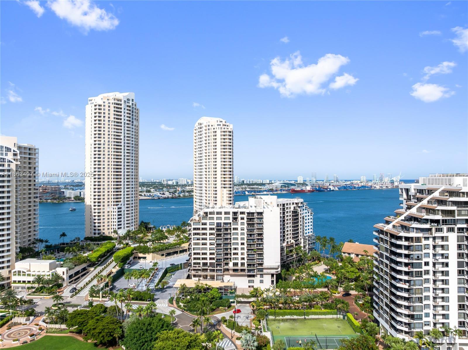 Experience luxury living in this beautifully renovated corner residence at Brickell Key Two, one of Miami’s most sought-after addresses. Spanning approximately 1,200 sq. ft., this light-filled home showcases stunning city and water views from every angle. The interiors feature a designer remodel with wood cabinetry, granite countertops, stainless steel appliances, and a combination of marble and wood flooring. Residents enjoy resort-style amenities and a recently redesigned lobby, all just steps—or a quick trolley ride—from Brickell’s premier shopping and dining destinations. This residence also includes two assigned covered parking spaces. A truly exceptional opportunity in the heart of Brickell Key.