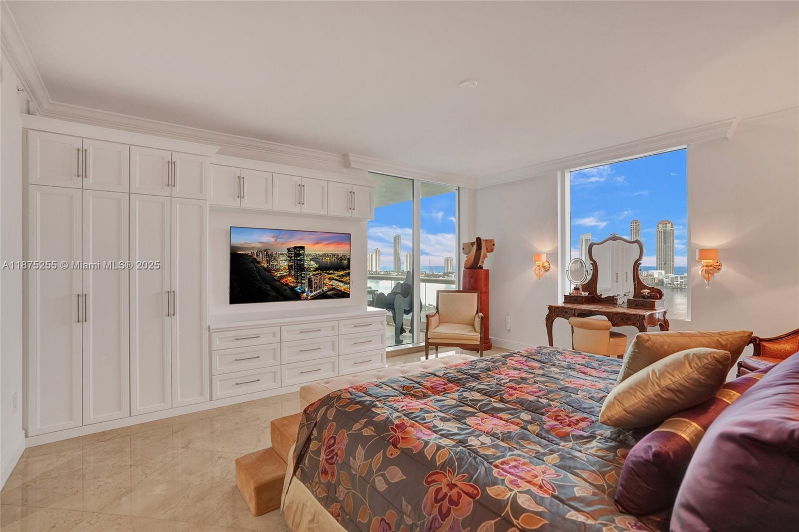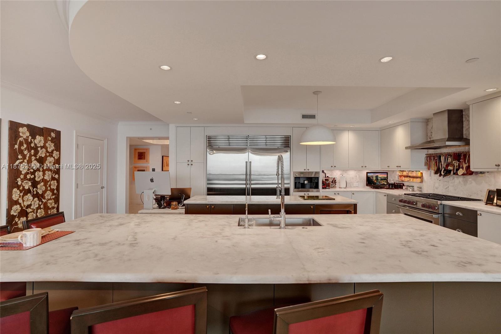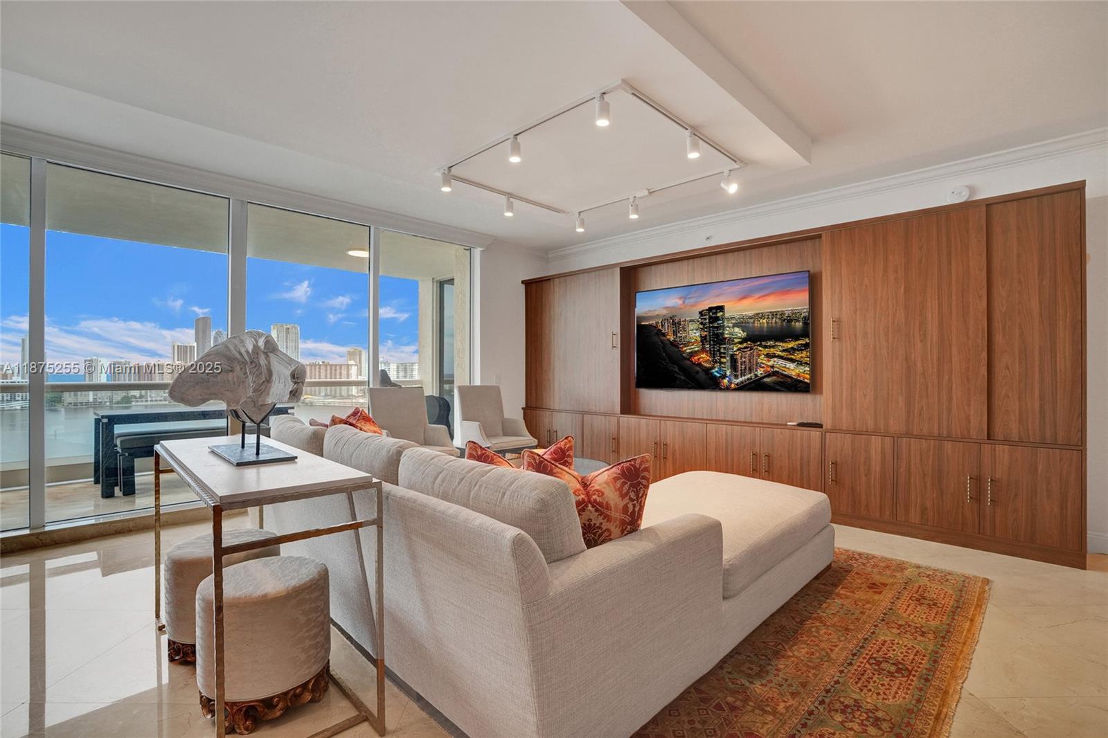 Luxury living at its finest in a home that truly has it all! Exquisite unit featuring stunning panoramic Ocean, Intracoastal, &City Views. 2 balconies, Impact Glass, Marble Flrs, Upgraded Kitchen-Designed for culinary enthusiasts:featuring 2 large cooking islands, quartz countertops, backsplash, dual Sub-Zero 36" refrigerator-freezer, Cove dishwasher, Wolf gas stove w/oven +combo 2nd oven/microwave w/hood. Indulge in the steam shower, and enjoy the serene view from the large bay window in the master suite. Add'l multipurpose rm can serve as a 4th bedroom/office. High Ceilings, built-in cabinets & custom closets throughout. Live in a top-rated bldg incl gym, coffee bar, movie theater, board room, guest suites,& pool area w/a putting green, Social rm equipped w/dance flr, bar,& full kitchen.