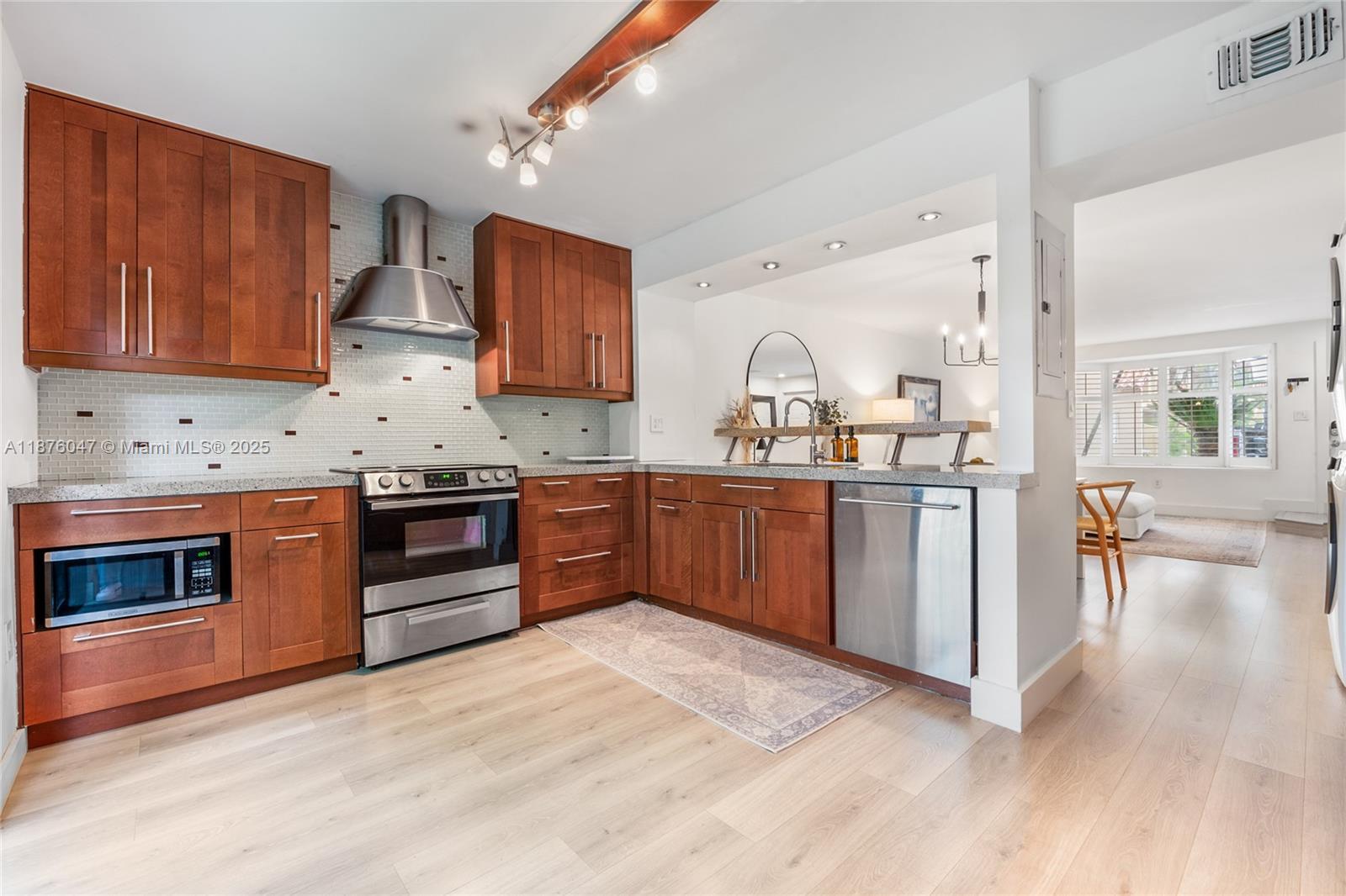 Updated corner 2BD / 1.5BA townhome in sought after Dadeland Cove. This home features ceramic tile flooring throughout, a modern kitchen with stainless steel appliances, granite countertops, glass backsplash, and impact doors opening to a private, fully fenced patio. The oversized living and dining areas are perfect for entertaining. Upstairs, you’ll find two spacious bedrooms with volume ceilings, including a primary suite with loft space, updated bath and impact glass doors. Ideally located between Pinecrest and Dadeland—just steps from Whole Foods, Target, Dadeland Mall, and major highways. HOA covers exterior, roof, insurance, cable TV, common areas, pool maintenance, and security. Experience the convenience and lifestyle of Dadeland Cove!
