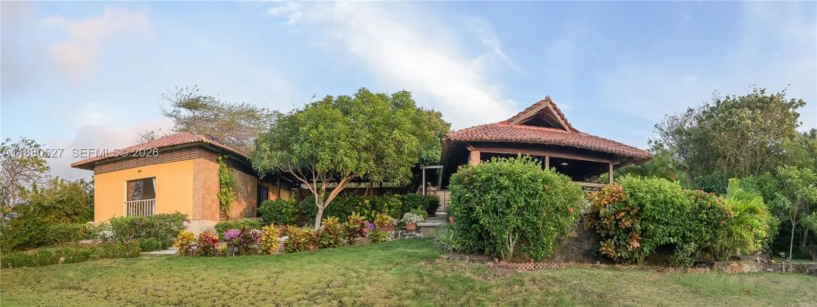 Very beautiful area with a guarded entrance, located between two international airports and near historic colonial towns. Close to a birdwatchers’ paradise and beaches ideal for surfing, fishing, and water sports. The house is very comfortable, offering excellent views of the Caribbean Ocean, spacious outdoor living and dining areas, an open kitchen, and four air-conditioned bedrooms. It features a barbecue area, a large outdoor jacuzzi, gorgeous gardens with native vegetation and fruit trees. Very private, yet it enjoys stunning views from its hilltop location.