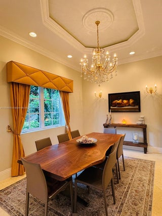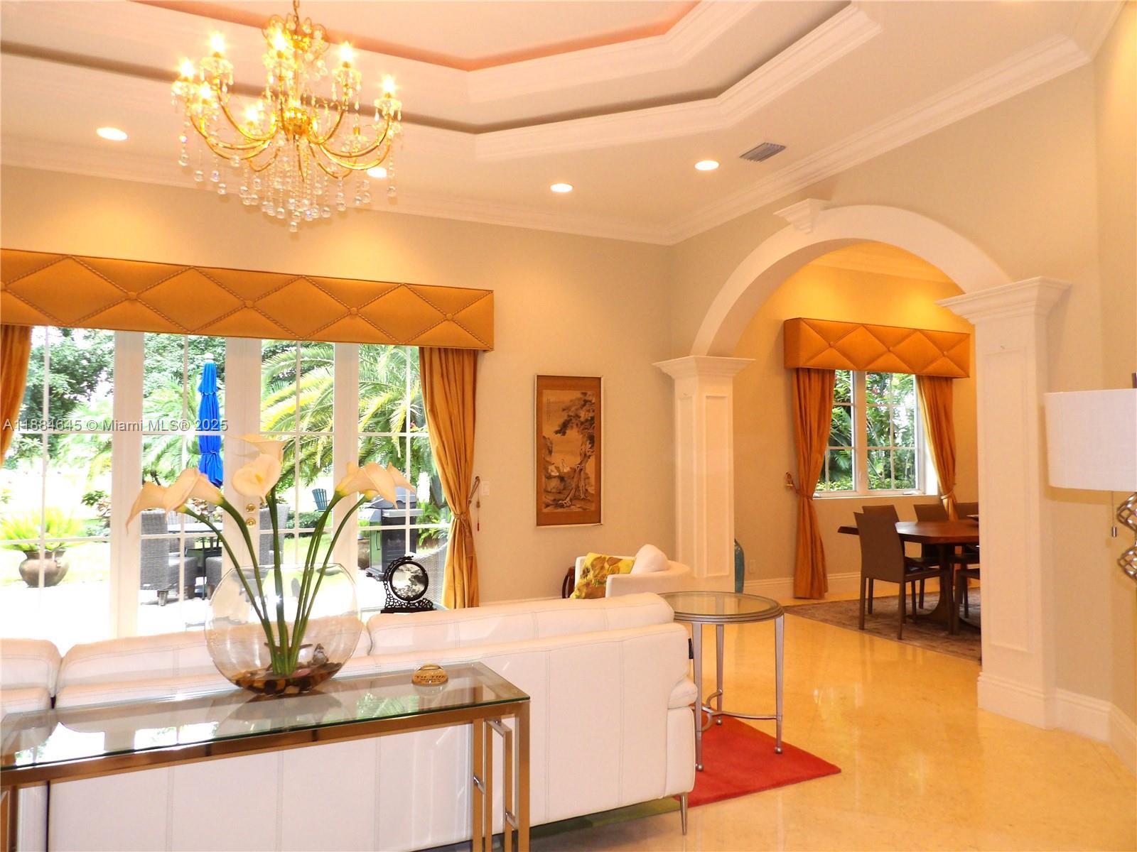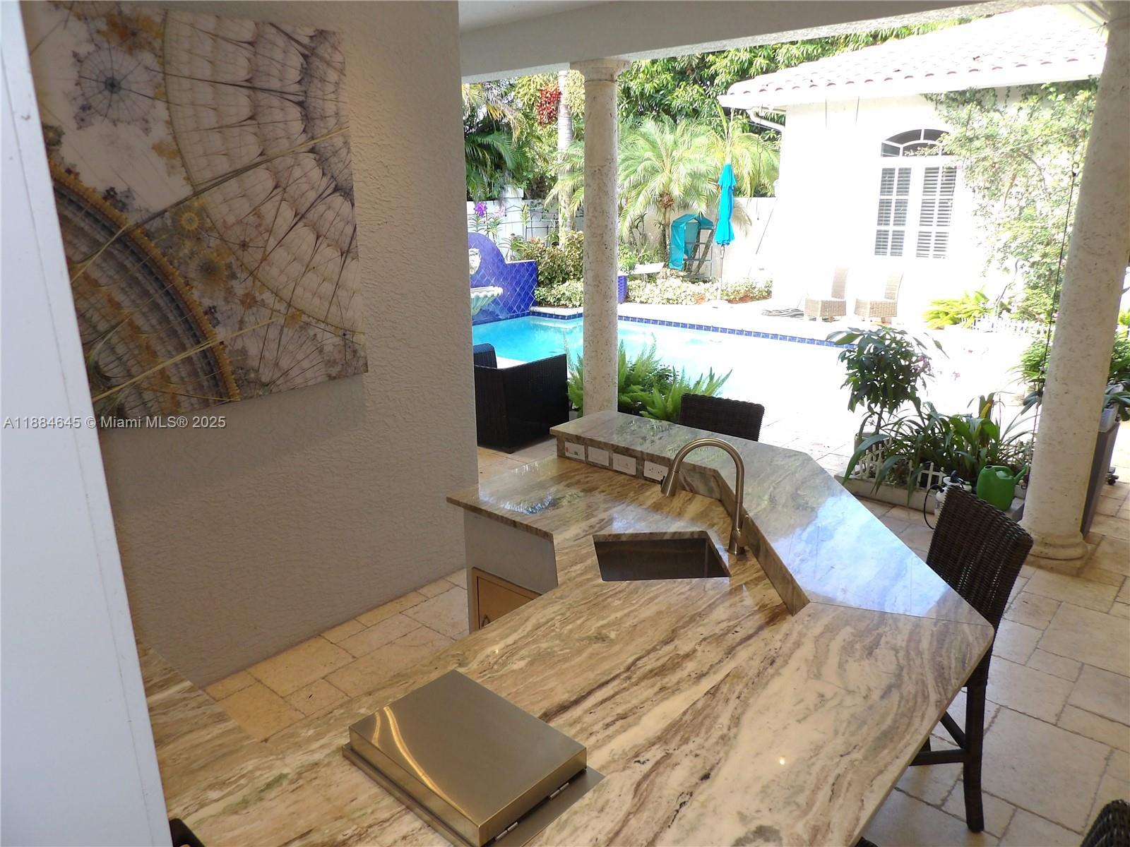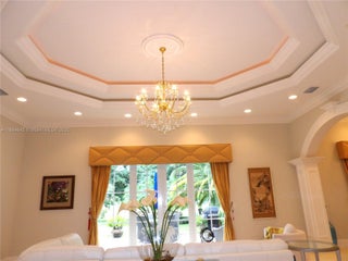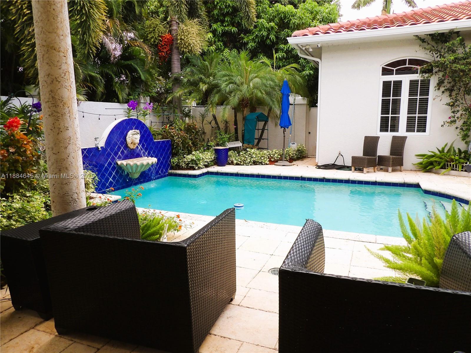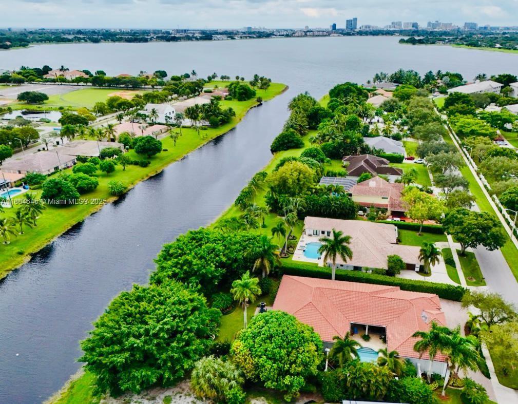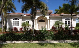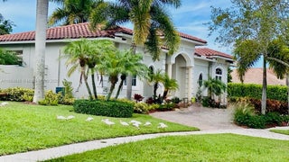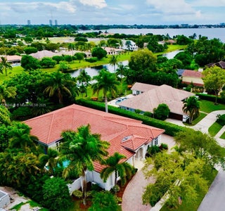Elegant custom estate in prestigious Presidential Estates, built in 2008 with hurricane-safe construction rated to 240 mph. This home offers 4 spacious bedrooms, an office, and 3.5 baths. The classically center courtyard true private retreat features a private guest quarters, pool, fountain, and summer kitchen—perfect for entertaining or relaxing. Inside, a brand-new quartzite gourmet kitchen pairs with solid wood cabinetry, seemles tile flooring. Elegant details include Egypcian marble thougout, Swarovski crystal chandeliers, and gold accents for timeless sophistication. Set on a 110x137 lot plus a ¼-acre canal easement with direct access to Lake Mangonia, two kayaks included. Just minutes to downtown, beaches, airport, and premier shopping. This home offers both luxury and convenience.