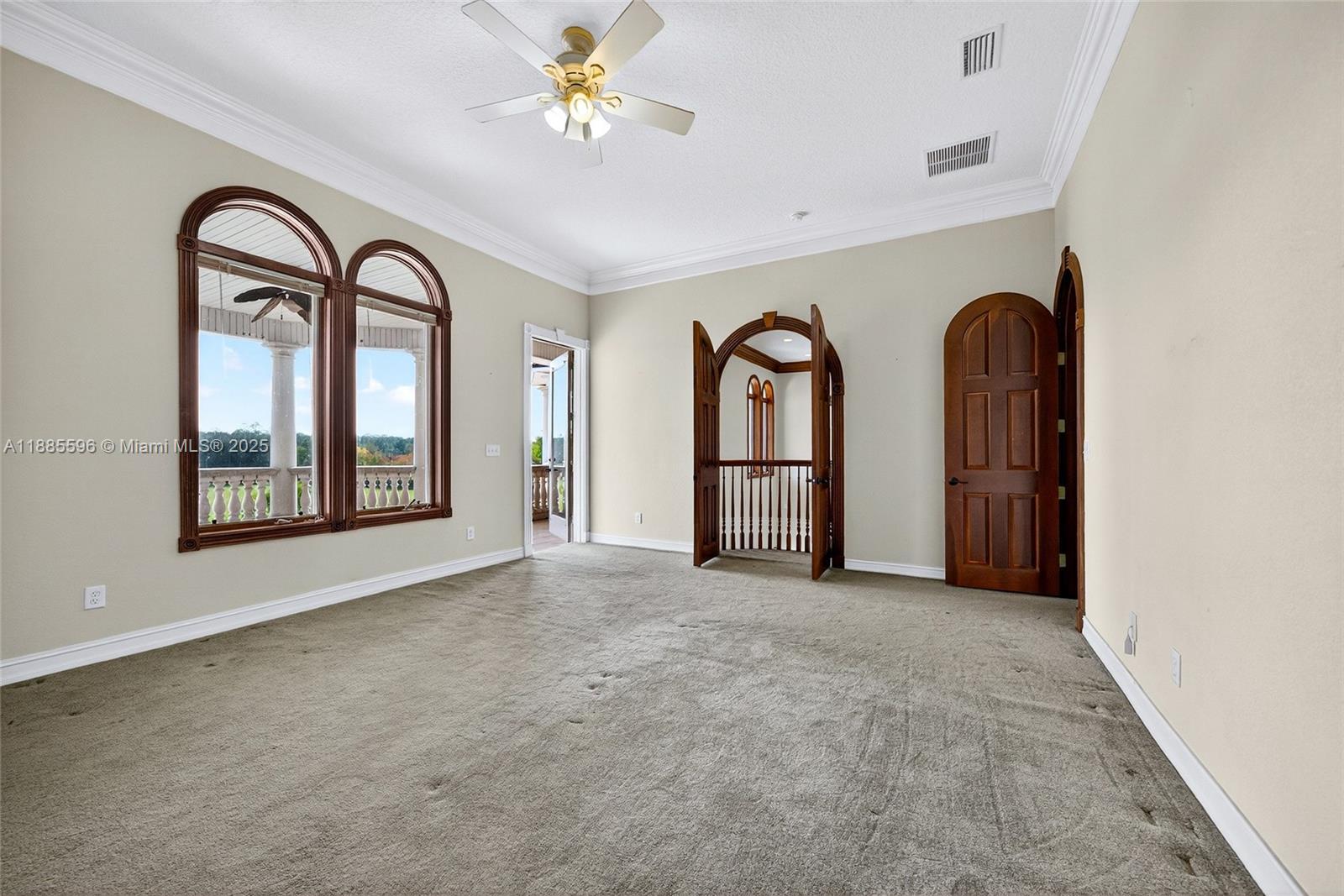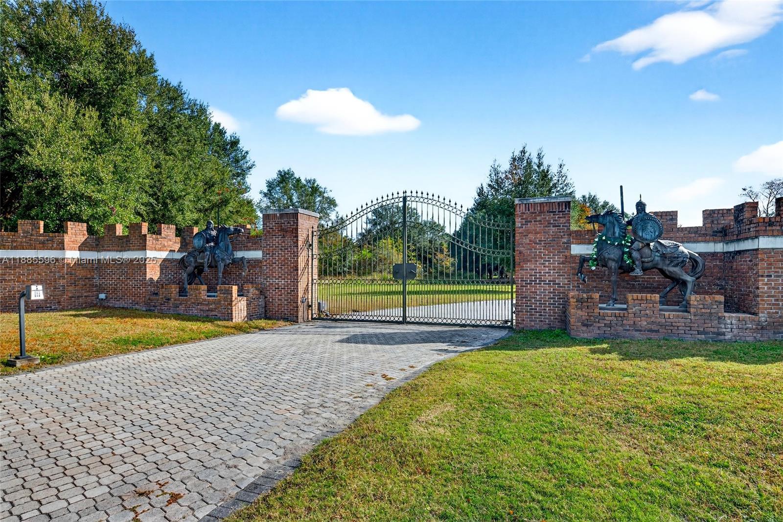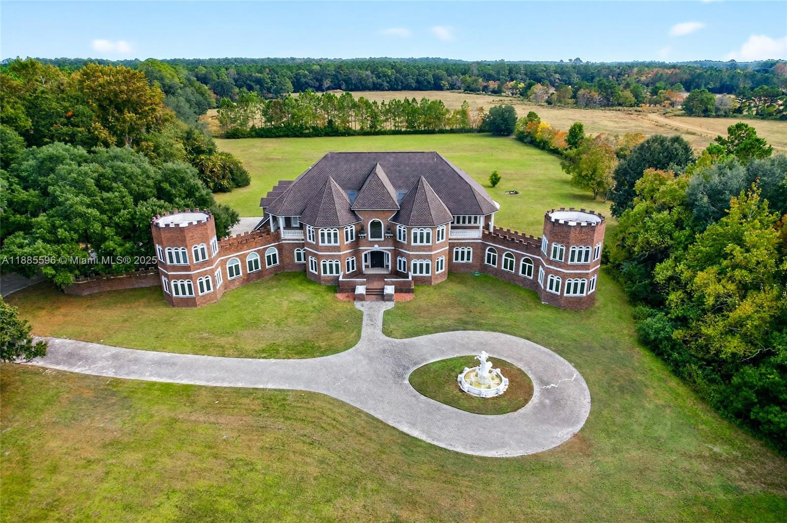 YOUR DREAM HOME AWAITS YOU!! GATED, long driveway with Oak trees, just under 5 acres this all brick 5 bedroom, 5 full bath, 3 balconies. Master Bath with garden tub overlooking backyard, 5 car garage, an in ground pool. Arched doorways and generous sized rooms. 2 Towers with upper and lower levels, private gym area, intricate wood detailing through-out, tray ceilings in dinig room wood fireplace, kitchen island. 3 wells, 3 Hot Water Tanks, 2 Electrical panels, 4 AC units and 2 fountains in the backyard and 1 fountain in the front yard. Property is being sold ''As-Is'' with the right to inspect. 12 plus rooms private offices or leisure areas. Seller will make no repairs. seller will not pay for or provide survey.