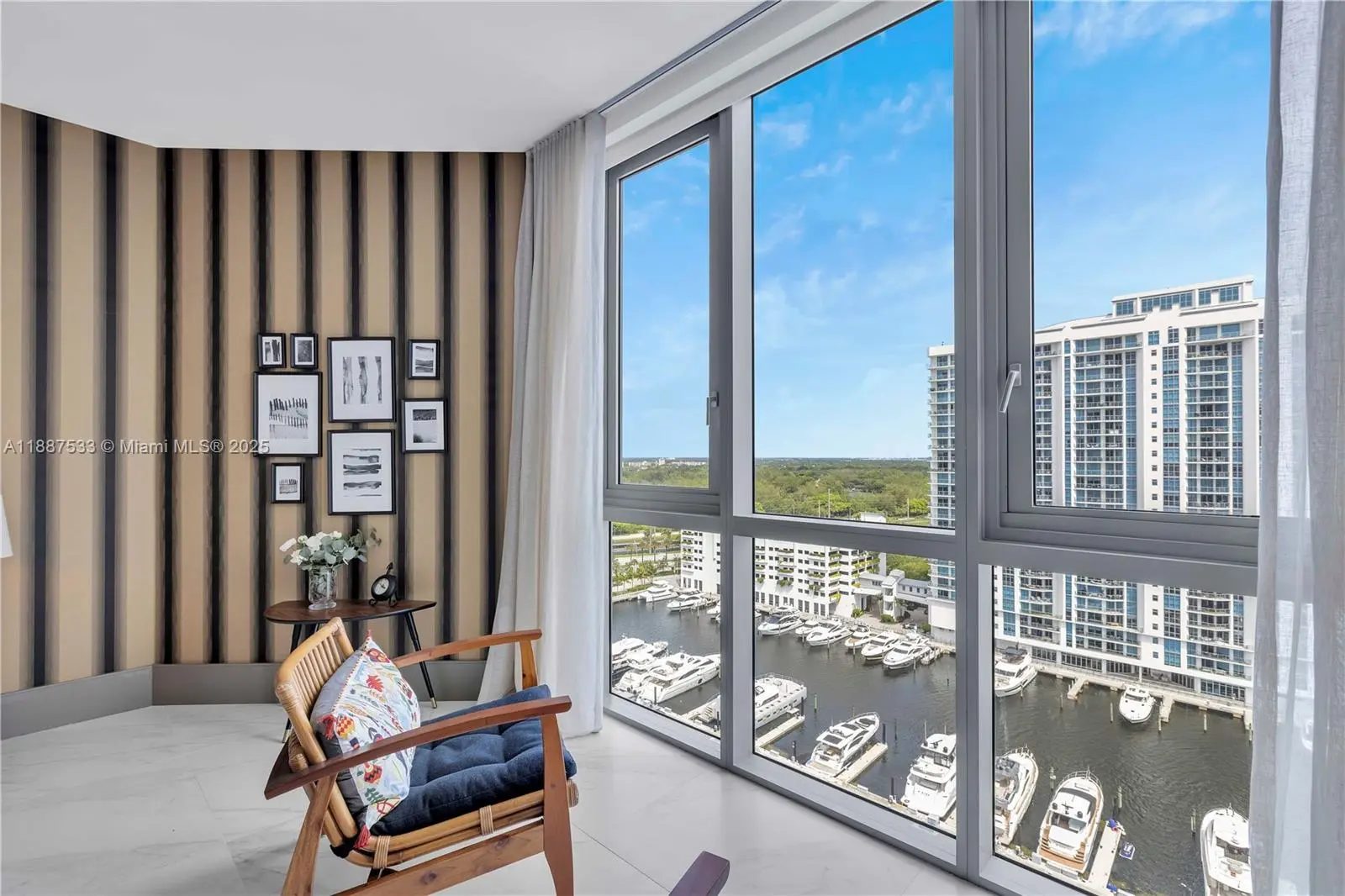 Luxuriously furnished 3 bedroom, 3.5 bath corner unit at The Reserve at Marina Palms in North Miami Beach. This 2,225 sq. ft. home features a custom kitchen, smart AC controls, and stunning ocean, marina, bay, and city views from the expansive terrace. The building offers exceptional amenities, including a fitness center, sauna, steam room, business center, private marina, and exclusive boat club. Includes one parking space and valet service. Marina slips for 45-50 ft. vessels are available for purchase separately—contact for details.