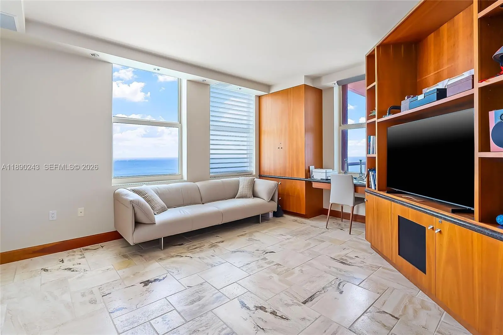 Awaken to gorgeous sunrises over the sparkling Atlantic, with the gentle sound of waves as your morning soundtrack. This elegantly appointed condo offers panoramic ocean and coastline views perfect for sipping coffee or sharing a sunset cocktail. Inside, the residence is luxuriously furnished, featuring marble floors, custom window treatments, built-in walk-in closets, extra storage, and a private laundry room. Designed for comfort and sophistication, this property features assigned parking. Nestled in The Palms, a secure and private enclave, you are steps from fine dining and all the magic Ft Lauderdale offers. Indulge in 2 resort-style pools with chair/towel service, a serene spa with sauna/steam. This is more than a home, it’s a seaside sanctuary where every day feels like a getaway.