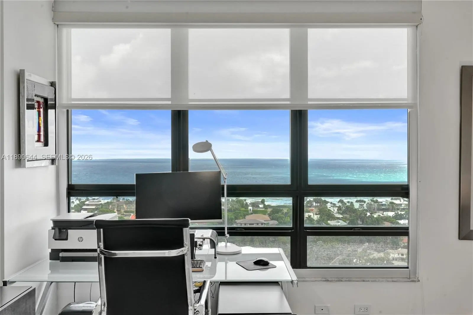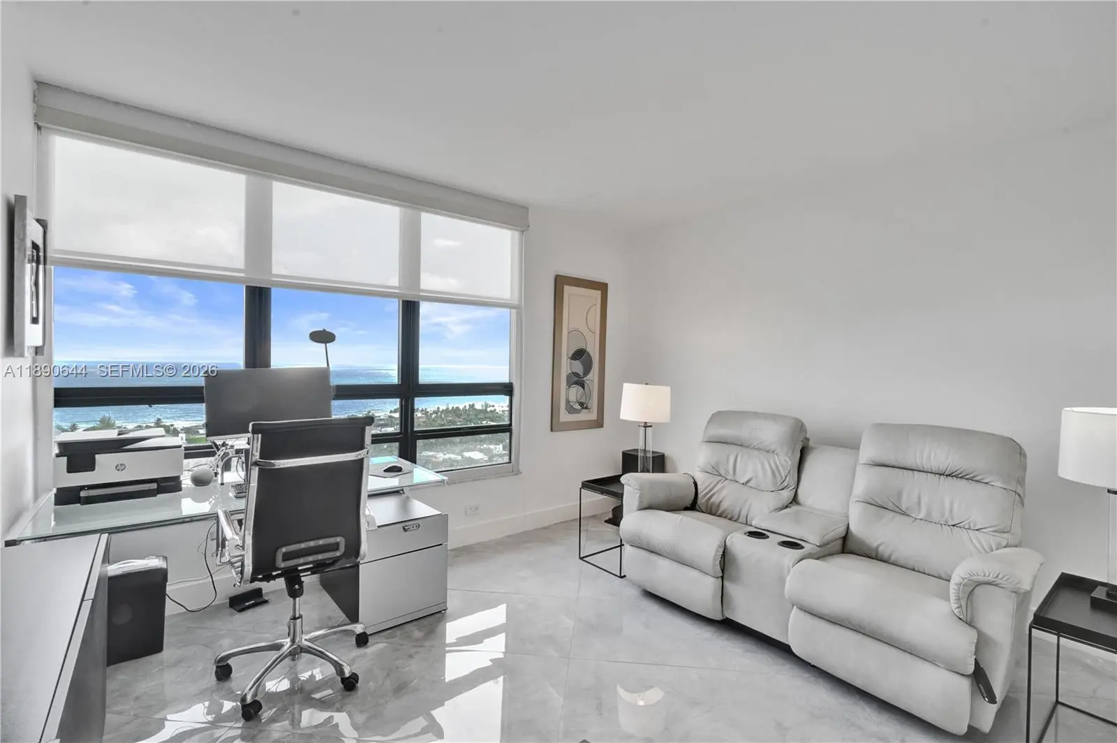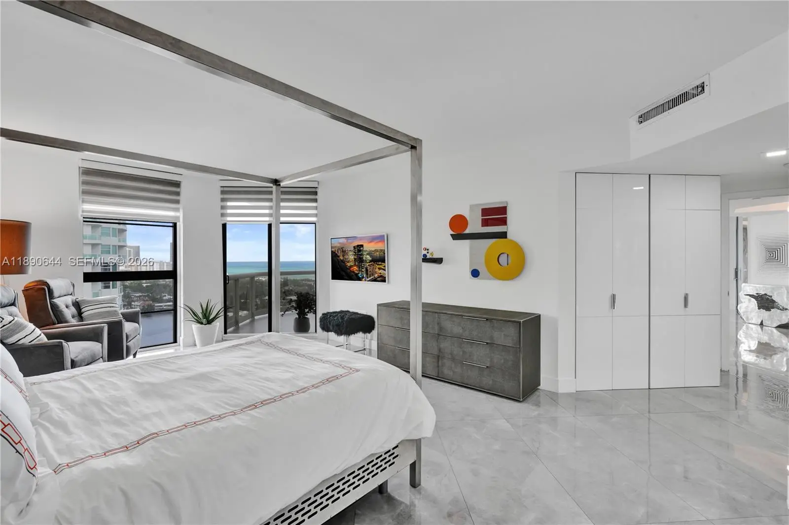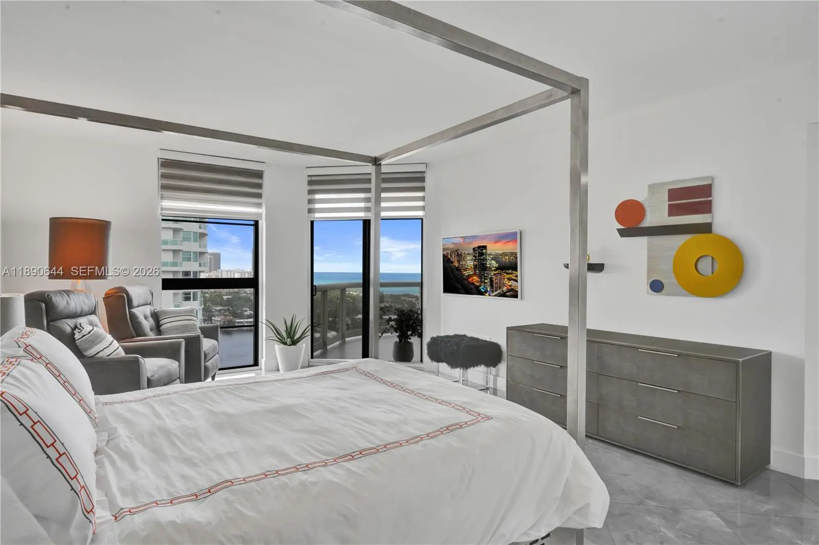Perched on the 26th floor of Terraces at Turnberry, one of Aventura’s premier waterfront addresses, this 1,936 square foot corner 06 residence commands sweeping ocean views over protected Golden Beach, with direct Intracoastal frontage below. A nearly 600 square foot wraparound terrace extends the living space well beyond the interior, placing you directly above the Intracoastal waterway, where boats move below against an ever-changing backdrop. Western exposure reveals additional views of Turnberry’s championship golf course. Inside, the minimalist interior showcases clean lines and ceilings over nine feet high. Walls of floor to ceiling impact sliding glass doors flood the main living areas with natural light and frame layered ocean, Intracoastal, and golf course vistas. The Poliform galley kitchen is appointed with Miele and Sub-Zero appliances. Custom closets and flush architectural doors by Armadi reinforce the cohesive modern design. A private, dedicated EV charging station provides rare convenience. Moments from Aventura Mall and waterfront dining. Elegant five-star building with resort-style amenities including 24-hour guard-gated security,valet, heated pool and spa with towel service, indoor and outdoor cafés, two fitness centers with sauna, tennis courts, Pilates classes, and racquetball.