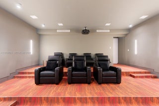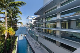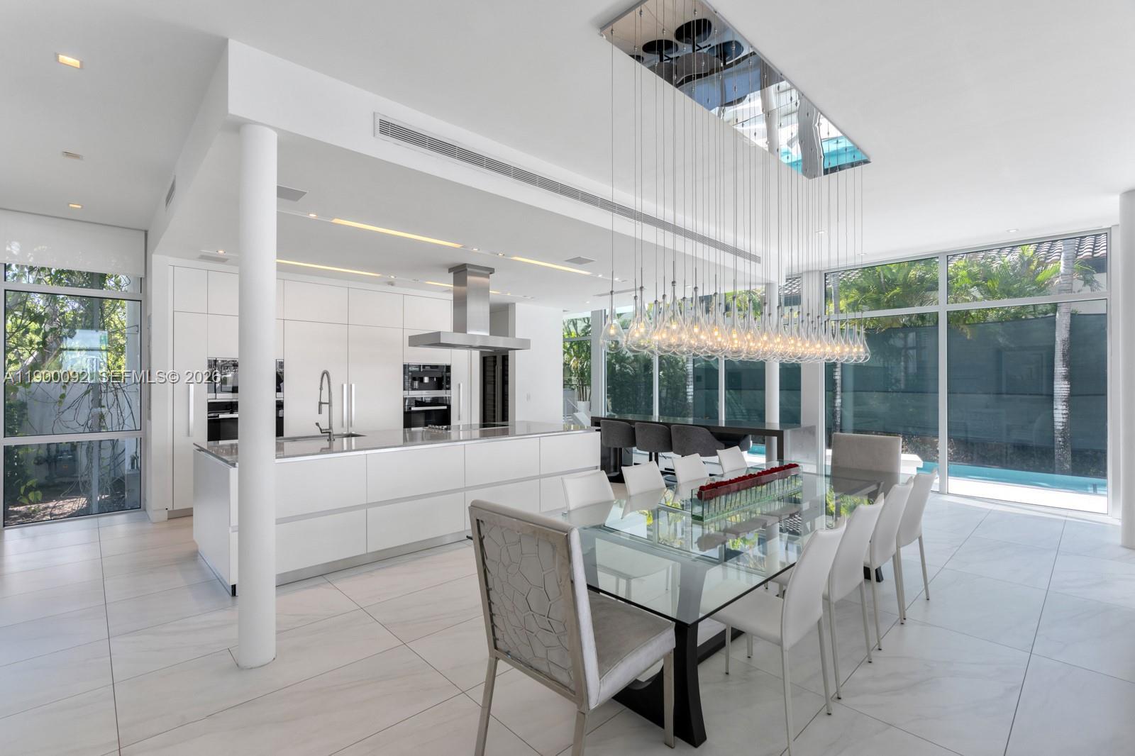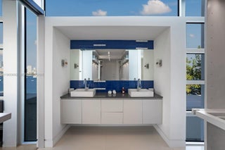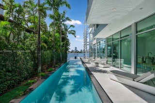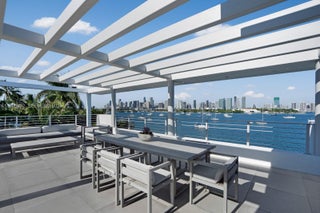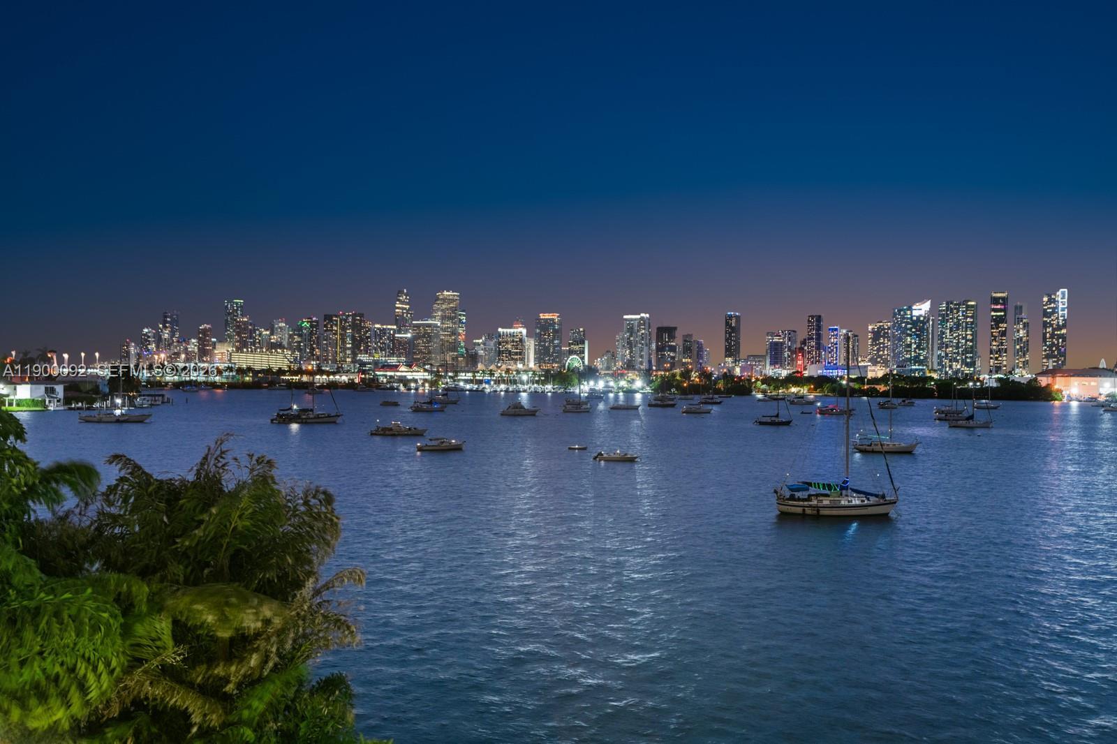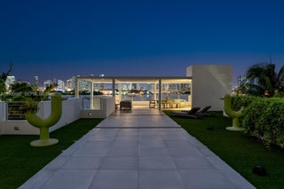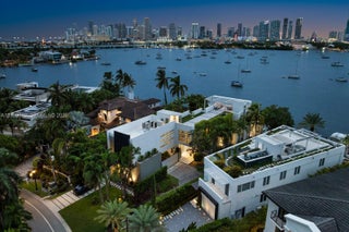 This sleek ultra-modern tri-level waterfront masterpiece is perfectly situated on the coveted tip of Hibiscus Island, offering breathtaking, unobstructed views of the bay, yachts, and the Miami skyline. Designed by renowned architect Roney Mateu of Mateu Architecture, the home features porcelain and oak wood floors, open living spaces, a gourmet kitchen with top appliances, a custom bar, movie theatre with leather recliners, gym, and outdoor kitchen. All bedrooms offer water-view balconies. Outdoor amenities include a heated infinity-edge pool, Jacuzzi with fire pit, summer kitchen, cabana bath, private dock with boat lift, and 85 feet of waterfront. A rooftop entertainment lounge delivers 360° panoramic views, making this residence the ultimate Miami lifestyle experience.