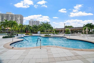 Beautifully remodeled 2/2 corner unit in the prestigious Hamptons West Condo. This home has 2 balconies & features a modern look with gorgeous marble floors. Updated Bathrooms as well as an updated kitchen with wood cabinets, granite counters, and stainless steel appliances. There is a Washer/Dryer inside the unit. This building is true luxury living! 2 pools, private gourmet restaurant & movie theatre, new state of the art fitness center/spa, tennis, racquetball, coffee shop, party rooms & kids room all on site!