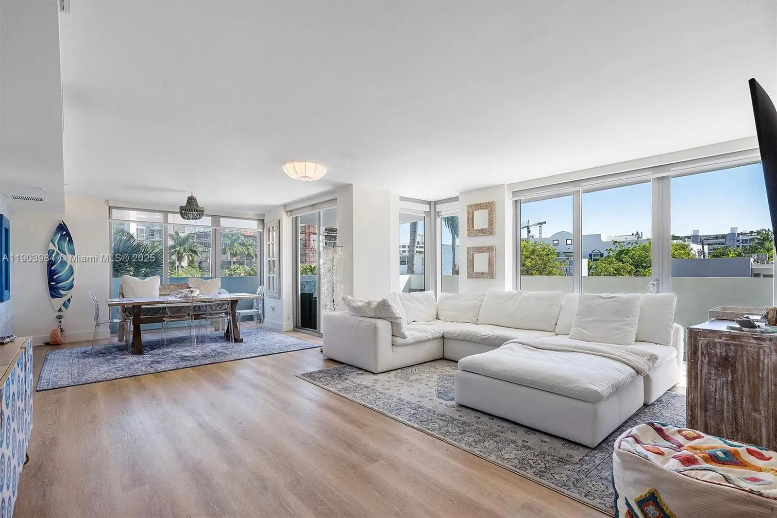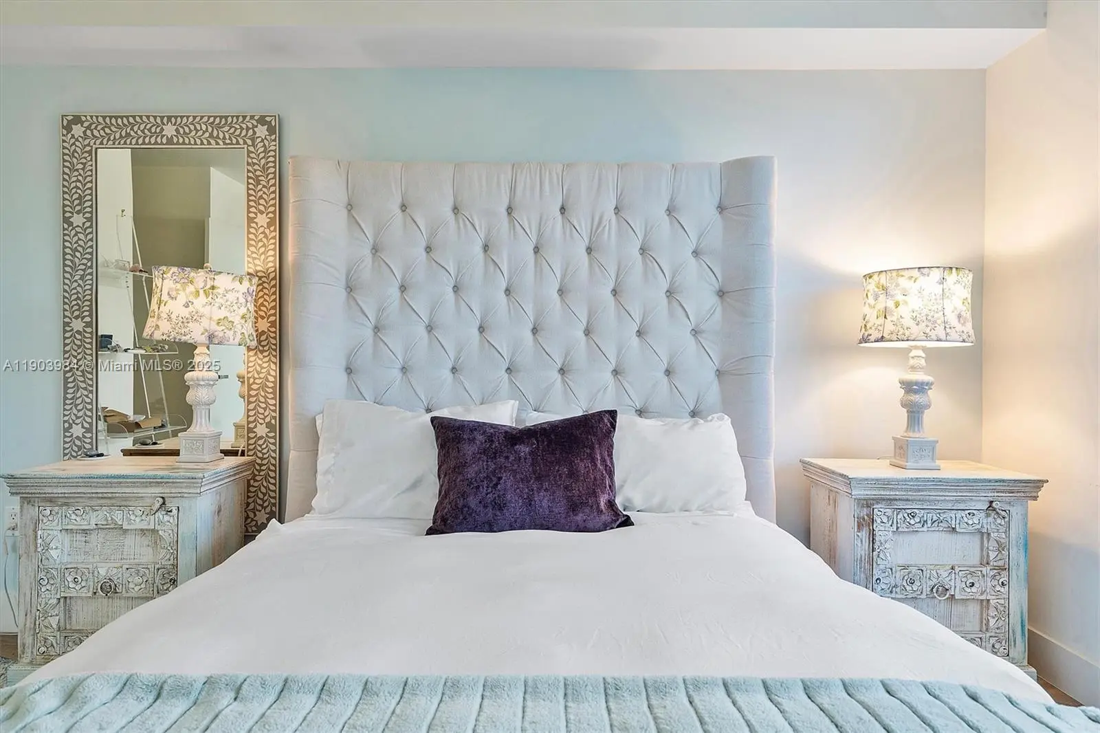 Find your zen in this beautifully curated 2-bedroom, 2-bath residence at The Palms, a boutique building in the heart of Bay Harbor Islands. Floor-to-ceiling windows fill the space with natural light and lead to an oversized terrace perfect for relaxing or entertaining. Enjoy tasteful designer finishes, custom wallpaper, and a calm, contemporary aesthetic throughout. This home includes two garage parking spaces. Building amenities feature a rooftop pool, BBQ area, and peaceful ambiance. Ideally located near Bal Harbour Shops, the beach, A+ rated K-8 School, fine dining, and markets offering the perfect blend of tranquility and convenience in one of Miami’s most desirable island communities. Parking spaces 81 & 82 in lower garage.