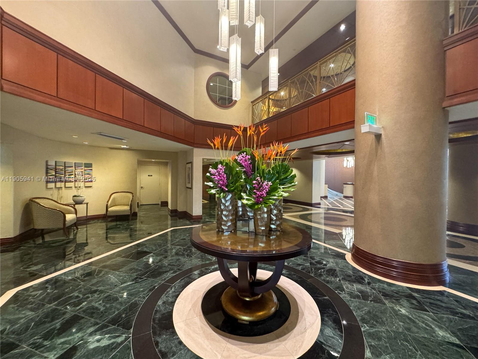 Step into elegance with this rare wraparound-lanai residence (approx. 2,080 SF). A private elevator opens to a double-door foyer, revealing bright, airy interiors in a calm neutral palette. The layout features 2 bedrooms, 2.5 baths, a spacious office/breakfast nook/den, a full laundry room and separate storage unit. The expansive wraparound terrace is perfect for effortless indoor-outdoor living. Retreat to a serene primary suite with a huge custom closet and spa-style bath. Two covered parking options include an assigned space plus complimentary valet. Enjoy resort-style living with a renowned spa, juice bar, state-of-the-art fitness center, tennis courts, BBQ area, playground, three pools, boat services, beauty salon, and more—blending the feel of a private home with five-star amenities.
