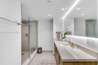 Luxuriously upgraded 3-bedroom corner residence in a newer boutique Bay Harbor building. High-end designer finishes, triple-exposure floor-to-ceiling impact glass, and custom gallery lighting highlight the open great room. Features include Lutron dimmers, finished closets, and motorized shades. The kitchen offers a custom backsplash, quartz counters, and upgraded appliances. Oversized primary suite with sitting area and large en-suite bath; second bedroom also with en-suite. Flexible third bedroom/office with built-in Murphy bed and access to the terrace. Rare zero-minimum rental policy allows immediate income potential. Two side-by-side parking spaces on the 2nd floor near elevator, plus storage. Minutes to A-rated K-8 school, beaches, Bal Harbour Shops, and dining.