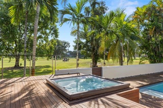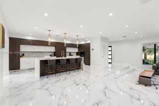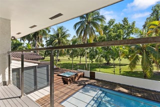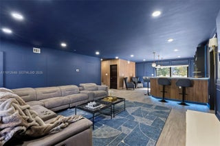 Unique and fully renovated 4/3 tri-level home in the guard-gated Country Club of Miami Estates with 24-hour security. Filled with natural light, this home features panoramic golf course views, a resort-style heated pool, spa, and a teak deck with heated built-in hot tub. Interior highlights include a Jenn-Air kitchen with paneled appliances, quartz countertops with large island, glass-enclosed wine display, and an impressive entertainment/theatre room with full bar and cabana bath access. The downstairs primary suite offers a spa-style bath with soaking tub and private garden views. Upstairs includes a balcony bedroom with golf views and a walk-in closet room that can convert back to a bedroom. Roof & AC 2016. Impact windows/doors and upgraded landscaping complete this exceptional home.