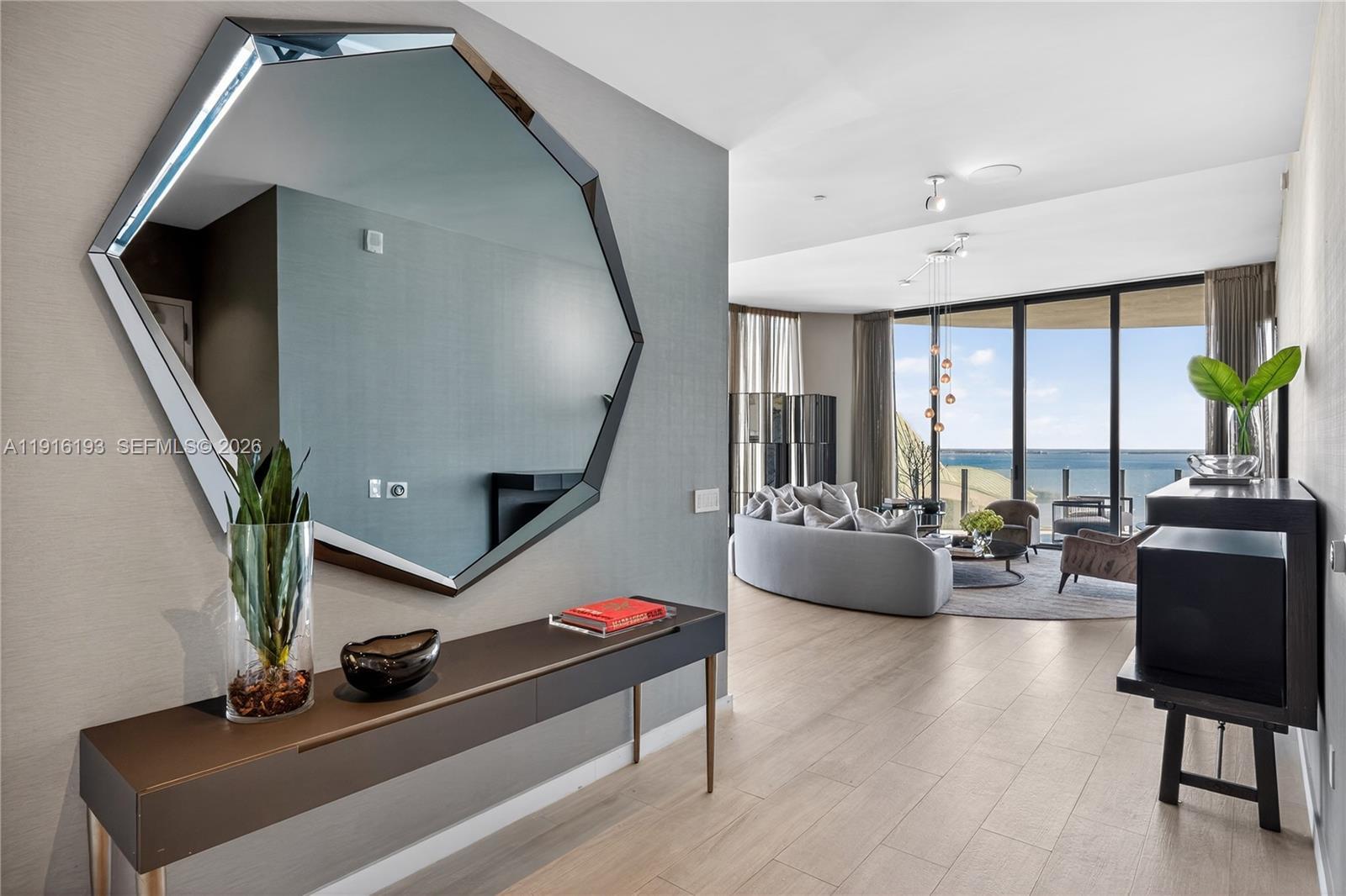 Positioned on a premier penthouse level, this residence showcases sweeping views of Biscayne Bay from its spacious, elegantly designed interiors. Striking 12-foot ceilings and light-filled living areas are enhanced by custom furnishings by Artefacto. A private elevator opens into a dedicated foyer leading to 3 beautifully appointed bedrooms and 3.5 baths. Park Grove is set on five acres of lushly landscaped grounds, featuring 50,000 SF of resort-style amenities. Residents enjoy multiple pools, a full-service spa, state-of-the-art fitness facilities, business lounge, theatre, outdoor gardens, pool side bistro, and close proximity to marinas. This exceptional development combines elevated architecture, unparalleled amenities, and a prime waterfront location in the heart of Coconut Grove.