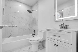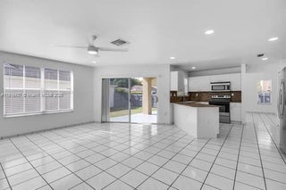 Exquisite Modern 4/3 Home in the Hammocks/Kendall - No HOA approval needed! This fully renovated home boasts state-of-the-art bathrooms and sleek new porcelain tile floors. The first floor features a separate bedroom and bathroom with a private entrance, perfect for in-law quarters or guest use. The master bedroom includes a spacious walk-in closet and an oversized shower. Enjoy the comfort of central air and ceiling fans both upstairs and downstairs. The open-concept kitchen seamlessly connects to a covered patio and a spacious fenced-in backyard, ideal for family BBQs. Situated on a corner lot, the property offers ample parking along with an attached 2-car garage. Requirements: Proof of income, credit score, background check.