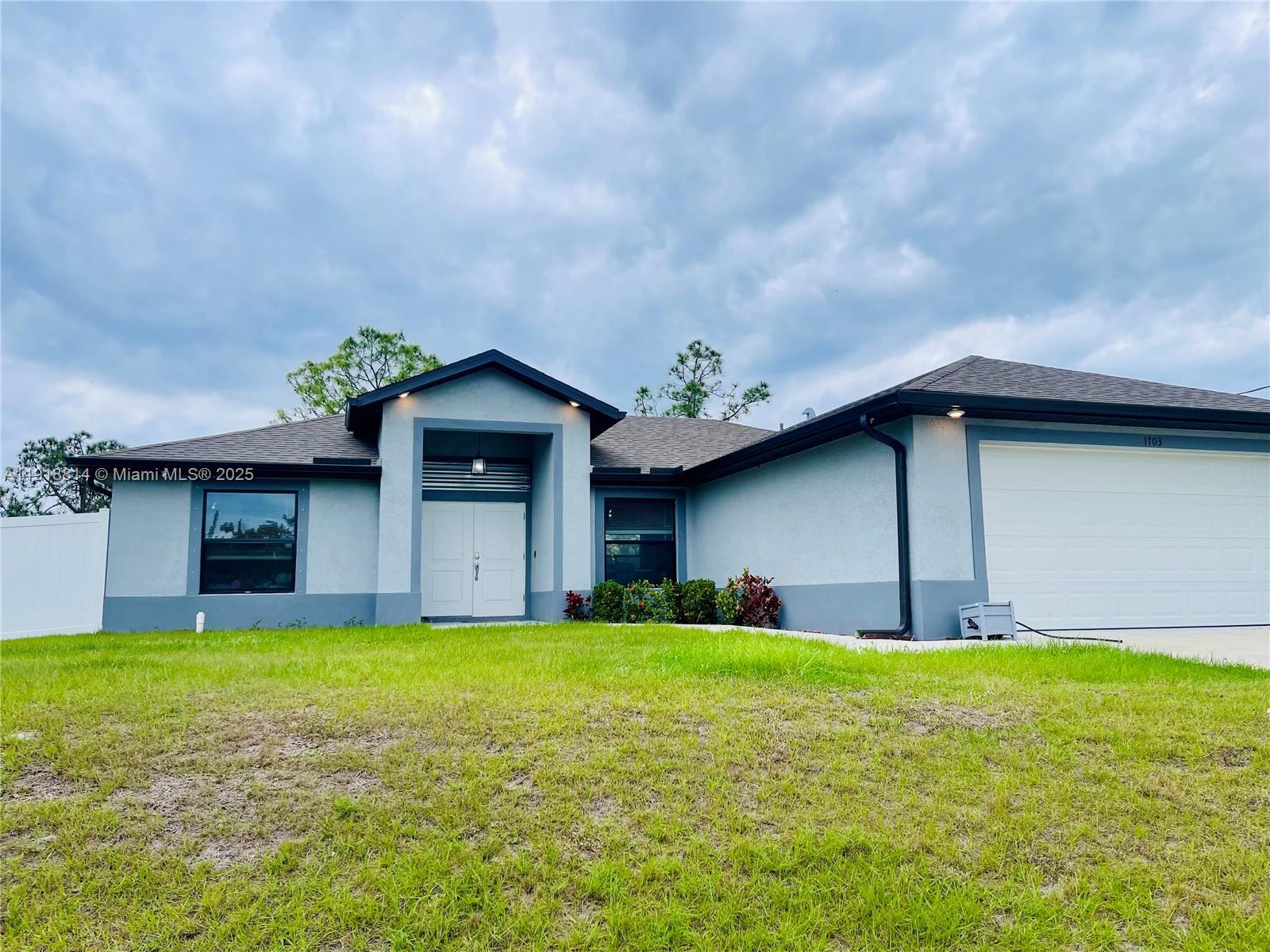 Welcome Home! Rapid Approval. Well maintained and practically new. Built in 2022 over a completely fenced HALF ACRE lot. Porcelain floors throughout the entire house, screened terrace, granite countertops, stainless steal appliances, kitchen cabinets with abundant storage. Security system, and new water treatment system that makes the water completely drinkable. Plenty of space for your above ground pool, RV, and/or Truck Parking. This property also features large closets in all bedrooms and a walk-in closet built into the master bathroom. Open Concept style with separate dining space. Laundry room with cabinets for extra storage (Washer and Dryer Included). Large garage with epoxy flooring. Great location! Close to SW Florida International Airport, supermarkets, schools, stores, hospital, and mayor facilities. Make your appointment today!!! FOR SHOWING APPOINTMENTS AND/OR QUESTIONS ABOUT THE PROPERTY, PLEASE CALL/TEXT LISTING AGENT.
