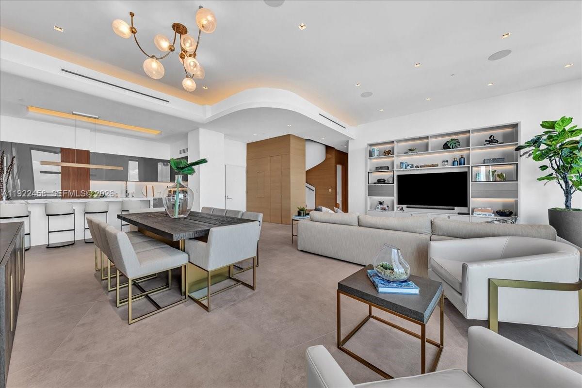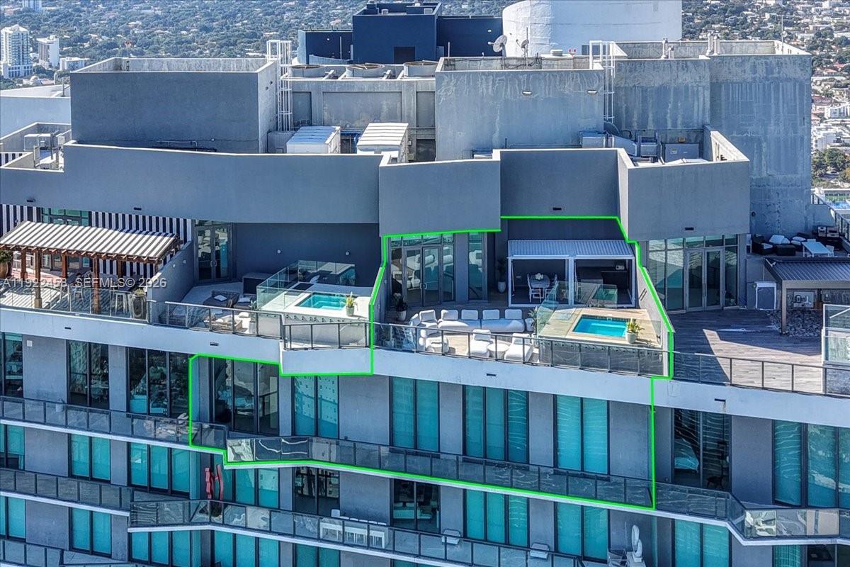 A Rare Jem In The Sky! Absolutely Breathtaking 2-Story Upper Penthouse featuring a Private Rooftop Terrace and Private Plunge Pool / Jacuzzi with Panoramic Water Views. This fully furnished ultra-modern residence spans 4,100 Sq Ft (2,200 interior / 1,910 exterior) and boasts bespoke interiors by renowned Avanzato Design, where every detail reflects refined luxury and thoughtful functionality. The main level offers soaring vaulted ceilings, imported hexagon flooring, a private movie room (easily convertible to a fourth bedroom), high-end finishes, and a full smart-home system. A custom spiral staircase leads to your private rooftop retreat featuring a jacuzzi, built-in kitchen with electric grill, lounge seating, and stunning skyline and bay views — perfect for entertaining or unwinding in total privacy. Residents enjoy DUA’s 5-star amenities and a premier Brickell location within steps from fine dining, luxury shopping, and scenic bayfront walks. A Rare Jem In The Sky!