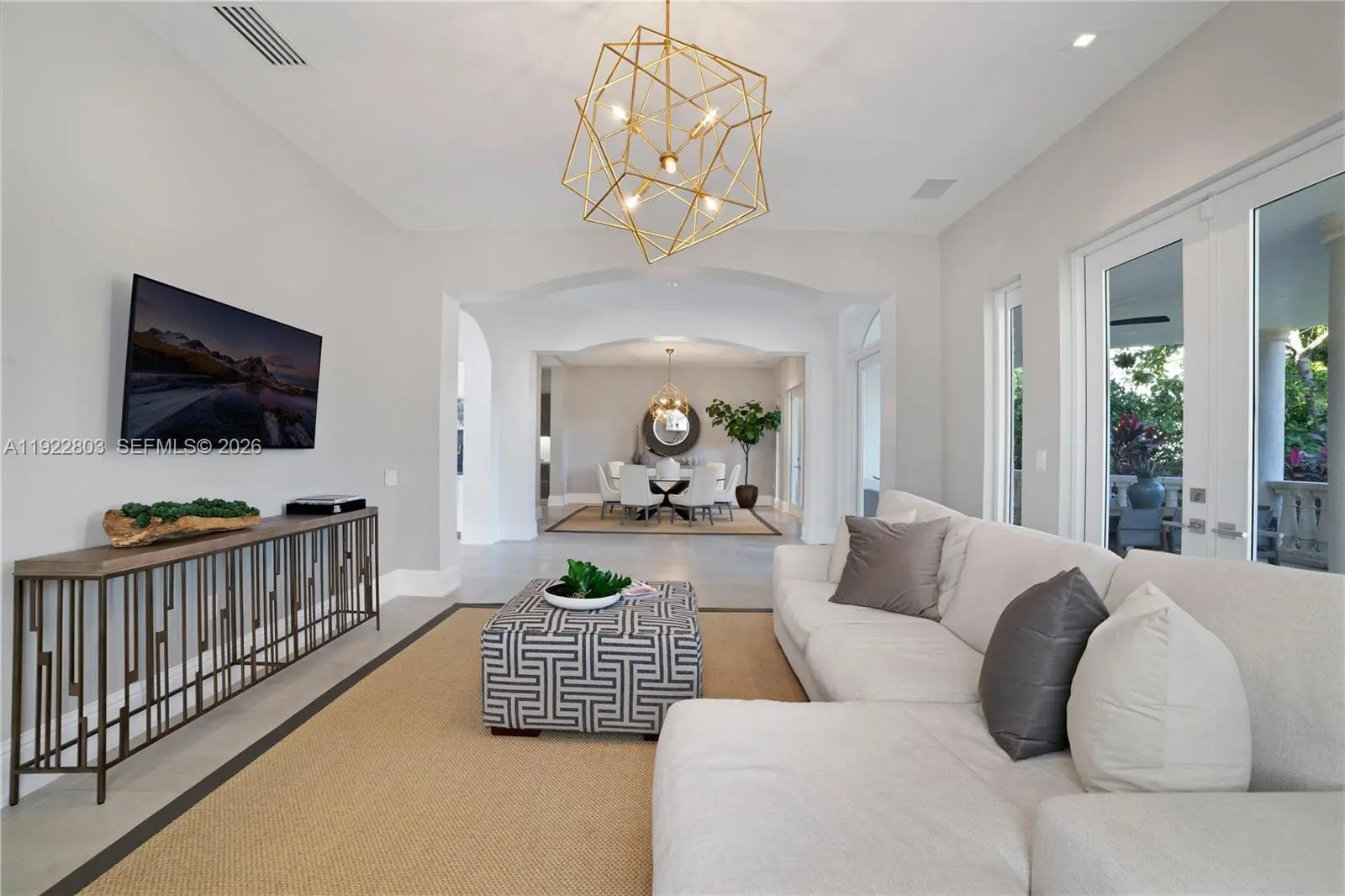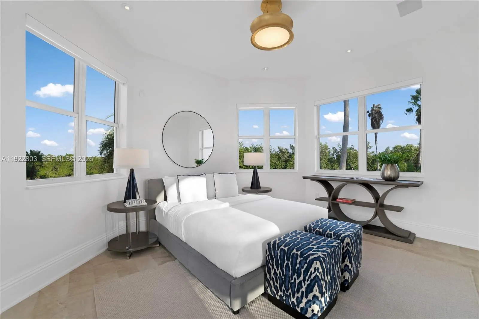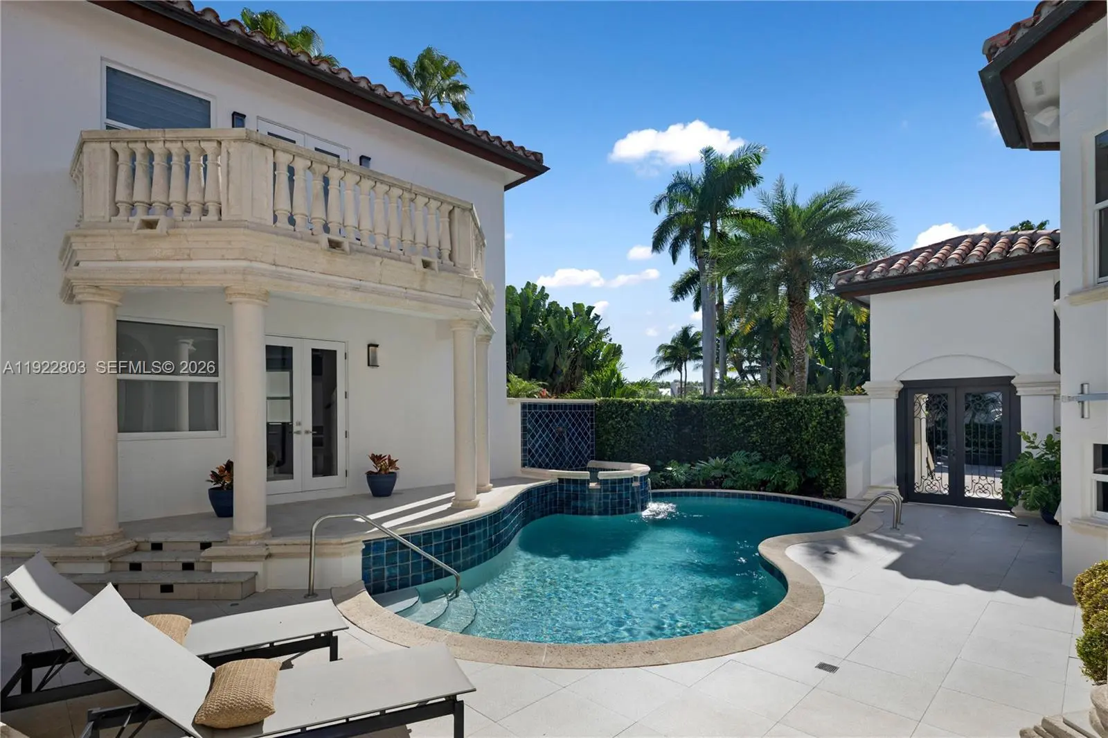 Live the ultimate country club lifestyle in Coral Gables within a prestigious, guard-gated community with 24/7 security. This beautifully updated estate offers refined design, everyday comfort, and effortless indoor-outdoor living, set alongside a championship 18-hole golf course and moments from a deep-water marina. Enjoy a premier location just minutes from downtown Coral Gables, Coconut Grove, and Miami International Airport, perfectly positioned to access Miami’s best dining, culture, and nightlife while preserving total privacy. The main residence features 4 generously sized en-suite bedrooms, including an elevated second-floor primary suite with a private balcony and serene golf-course and courtyard views. A separate guest house adds a 5th bedroom, full bath, kitchen, living room, and its own balcony, creating the ideal space for visitors or extended stays. The resort-style courtyard and sparkling pool connect both homes, enhanced by peaceful bay breezes. A standout outdoor summer kitchen, wrapped in bold blue tile with a built-in bar and grill, completes the backyard retreat. Fully furnished, rare end lot, unmatched tranquility.